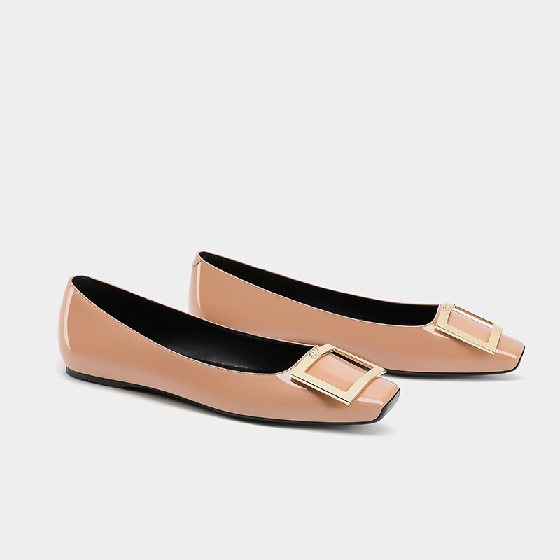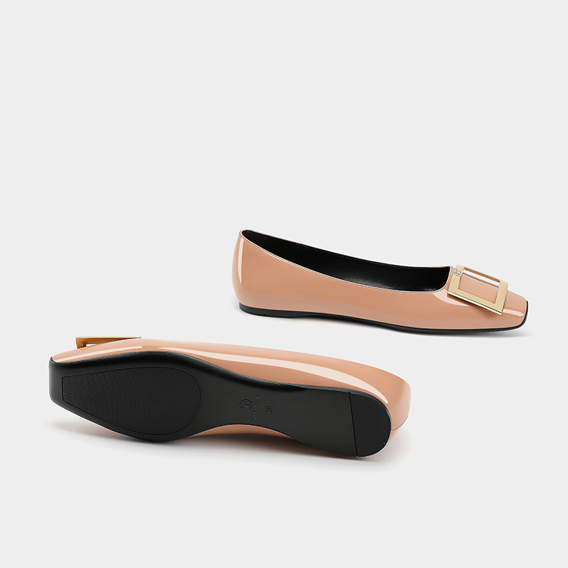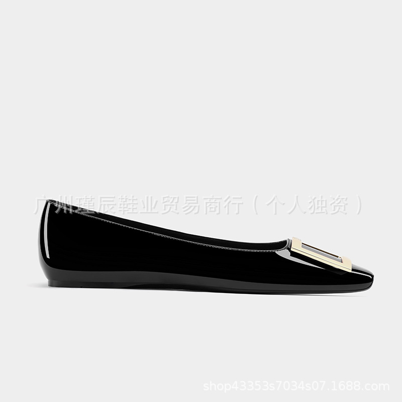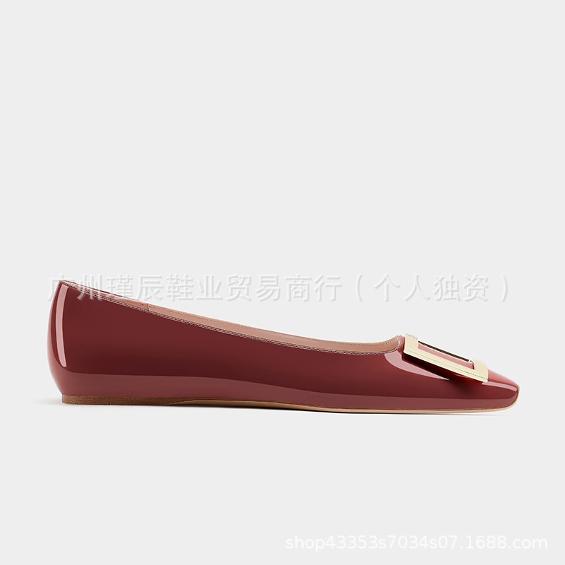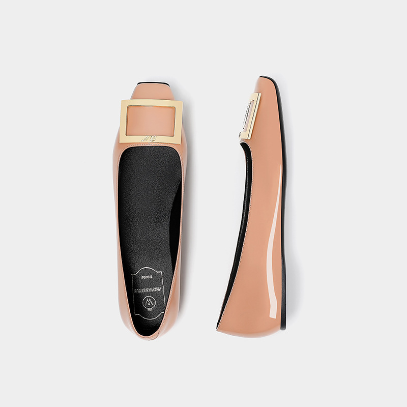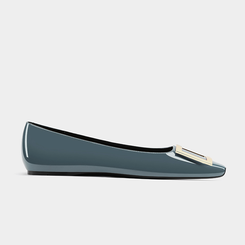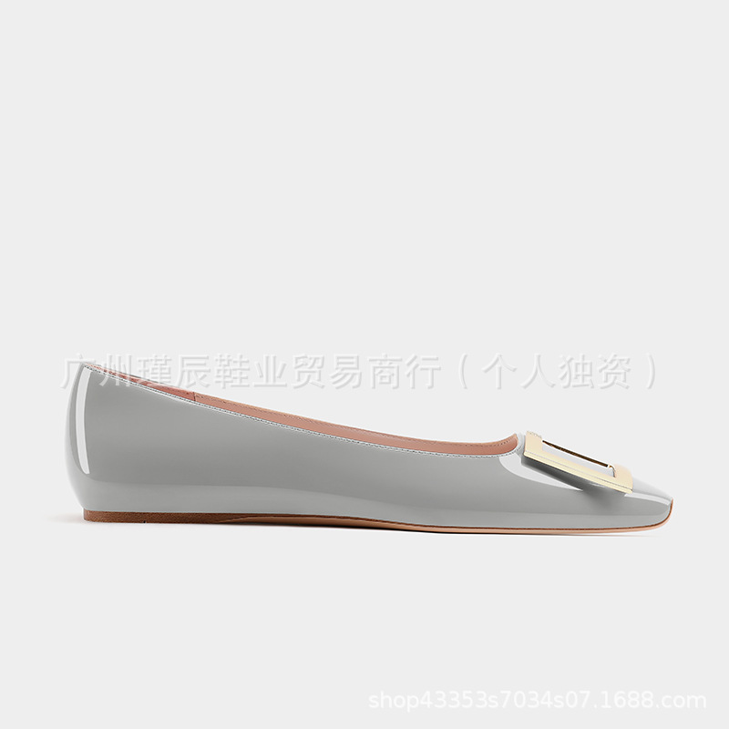여성용 하이 버전 스퀘어 토 RV 엘리펀트 그레이 스퀘어 버튼 플랫 슈즈 프렌치 하이 엔드 가죽 내부 강화 발레 슈즈