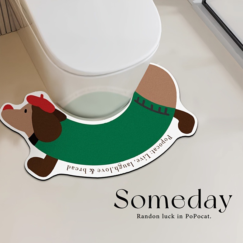 욕실 만화 닥스훈트 화장실 U자형 발 패드 욕실 화장실 물 튀김 방지 소변 흡수 속건성 미끄럼 방지 및 먼지 방지 패드스토어 가기
