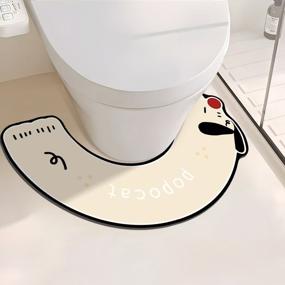 욕실 만화 닥스훈트 화장실 U자형 발 패드 욕실 화장실 물 튀김 방지 소변 흡수 속건성 미끄럼 방지 및 먼지 방지 패드