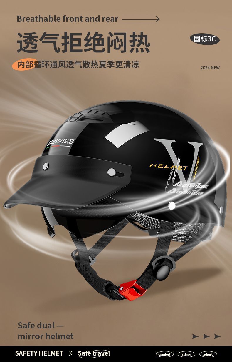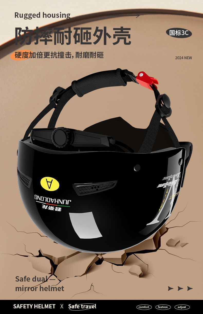 새로운 국가 표준 3C 인증 전기 자동차 헬멧 남여 오토바이 여름 태양 보호 경량 패션 안전 헬멧