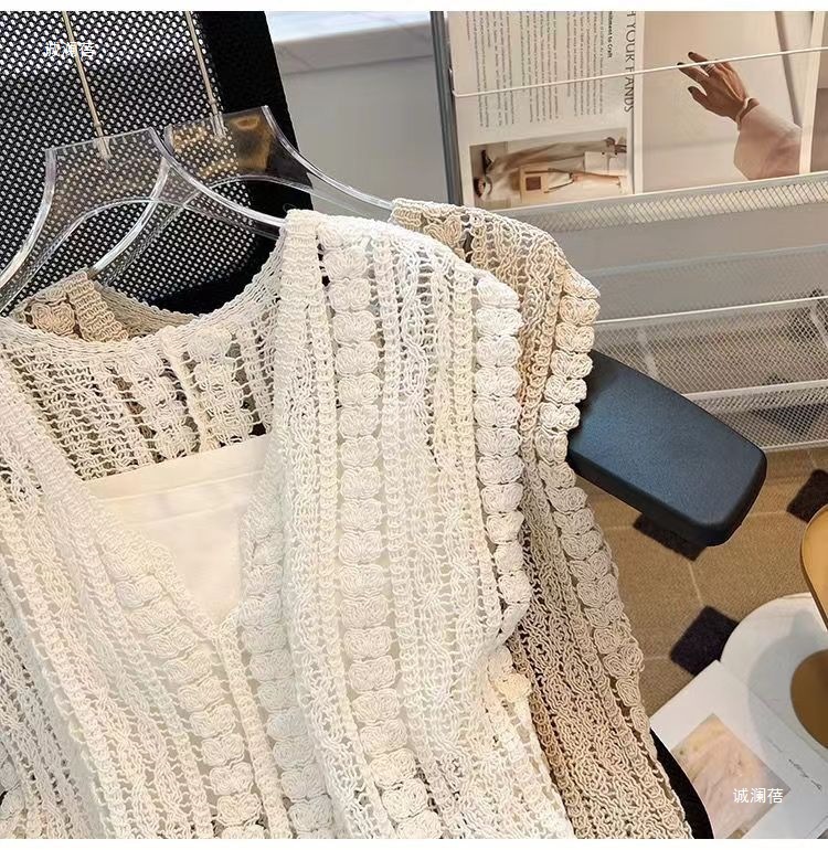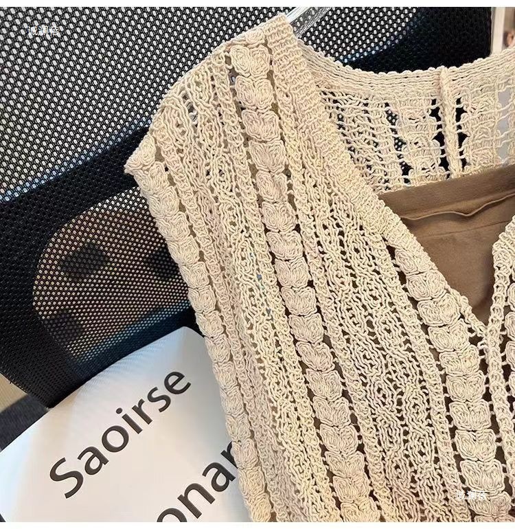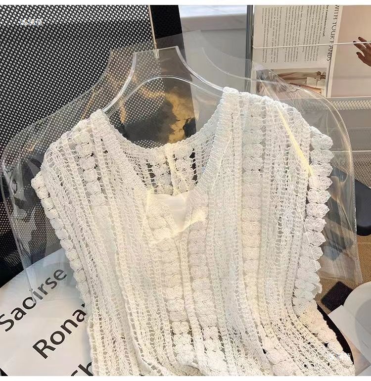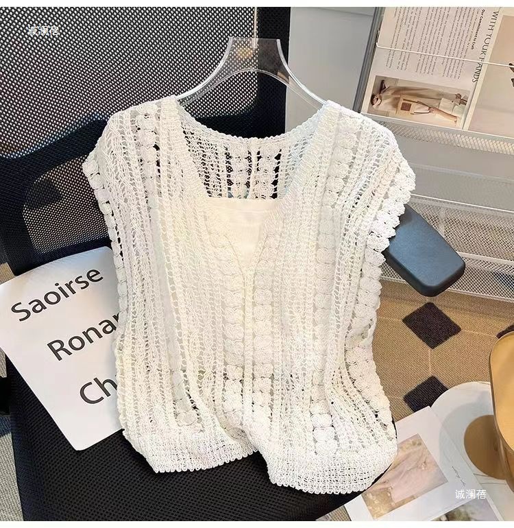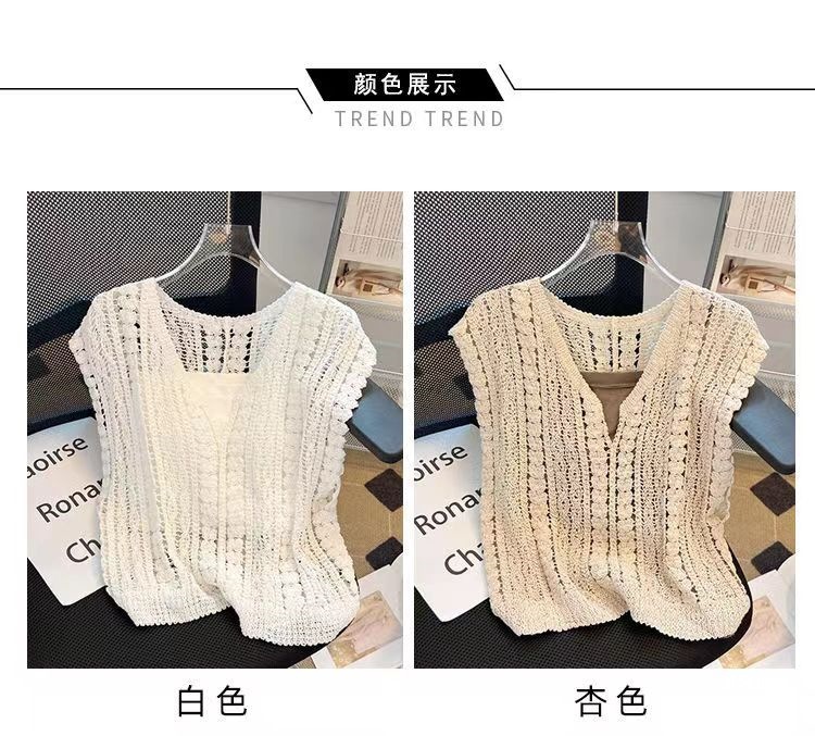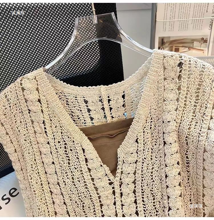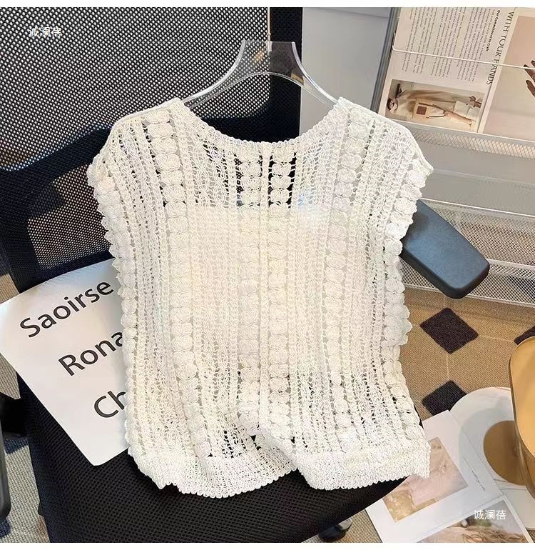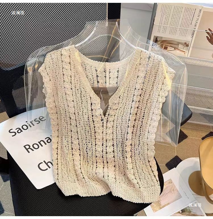 속이 빈 크로 셰 뜨개질 조끼 여성 디자인 민소매 탑 2025 여름 새 스타일 v 넥 풀오버 블라우스 겉옷스토어 가기