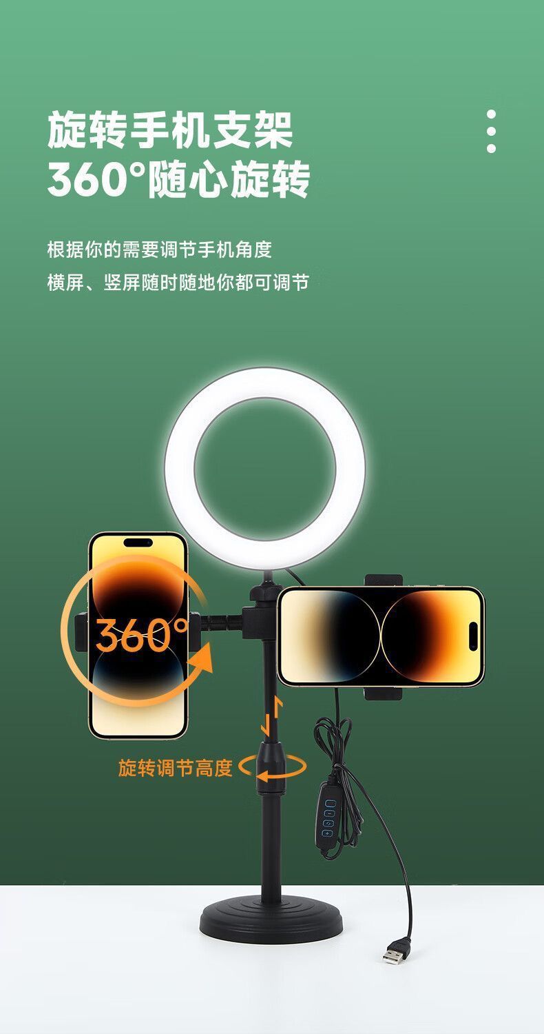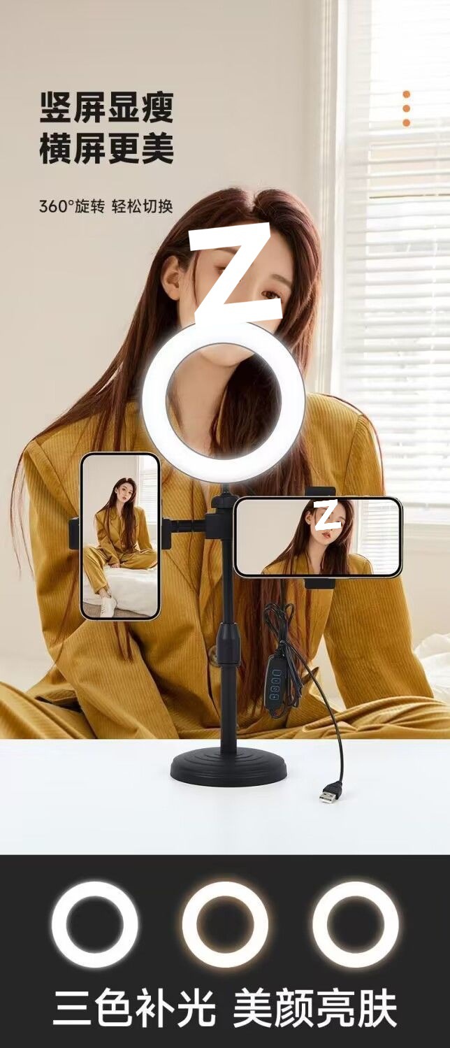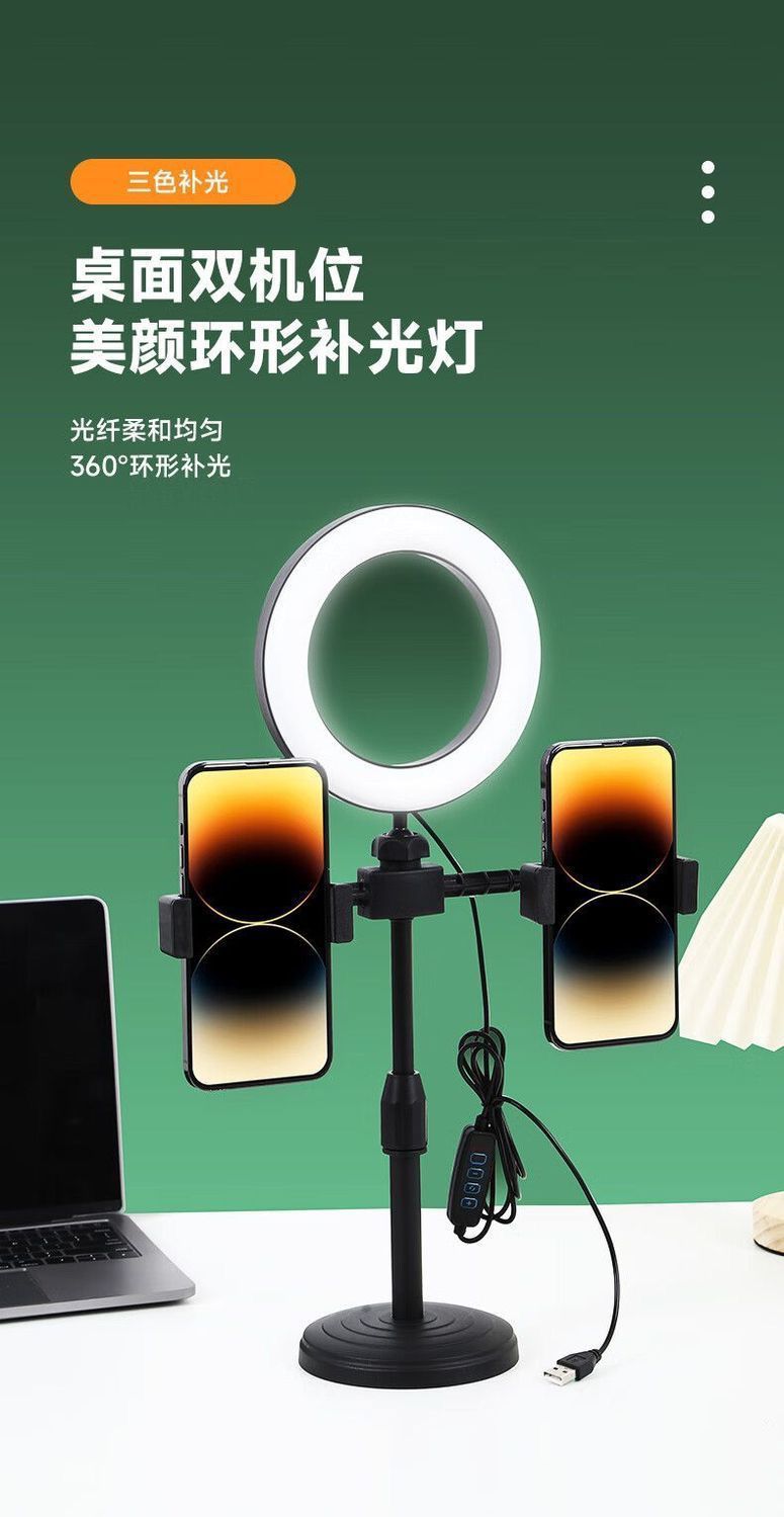 • 데스크탑 라이브 방송 셀카 리프팅 브래킷-[듀얼 카메라 + 3색 필라이트]