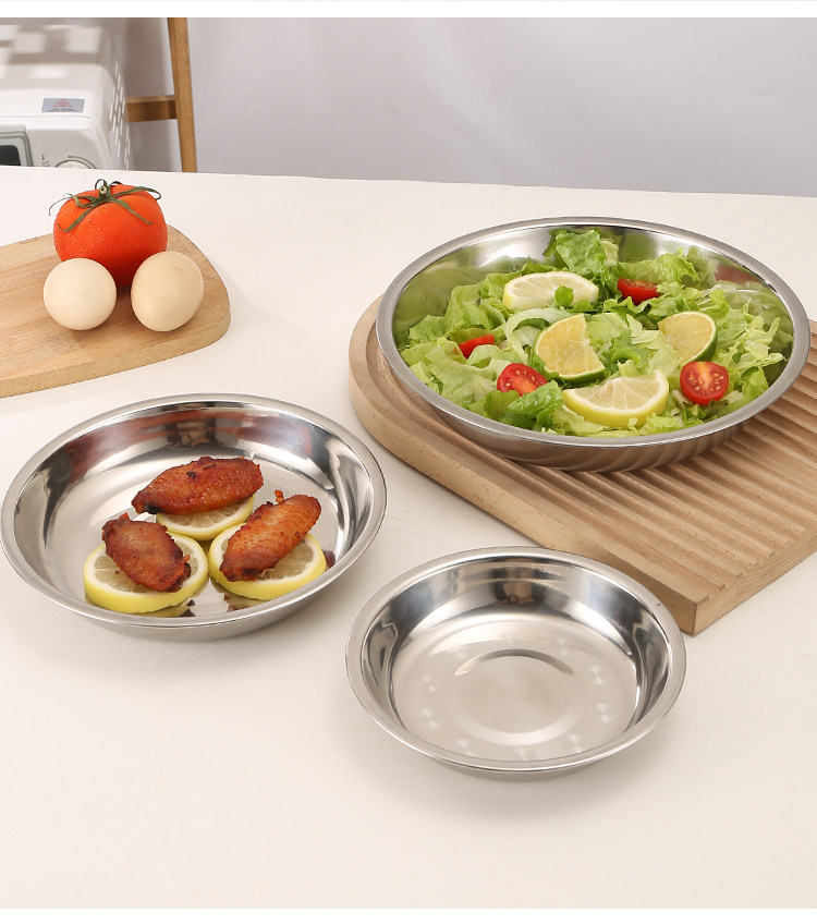 304 스테인레스 스틸 디스크 과일 디너 플레이트 야채 접시 플레이트 세트 생선 접시 깊이 201 가정용 깊은 주방 상업용