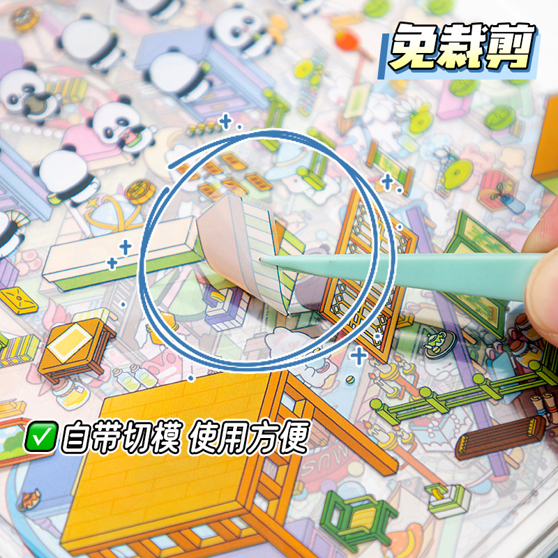 어린이를 위한 미니어처 조경 스티커 컬렉션, 손으로 만든 시뮬레이션 장면 스티커, 3D 입체 캐빈 콜라주 패턴