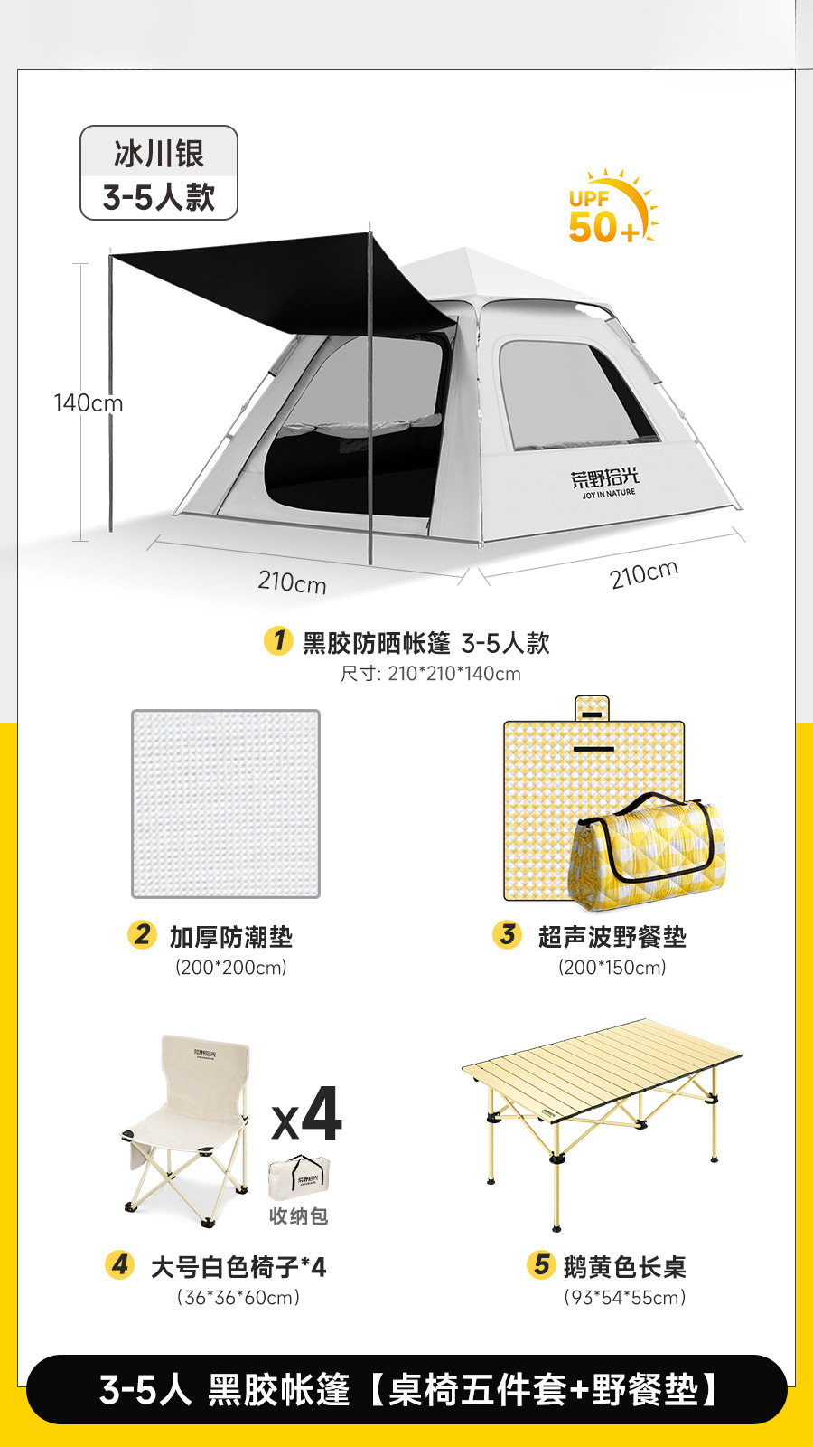 • 완전 암막 비닐 자외선 차단제 [3-5인용 텐트 + 캐노피] 사각 테이블 + 흰색 접이식 의자 * 4 + 피크닉 매트