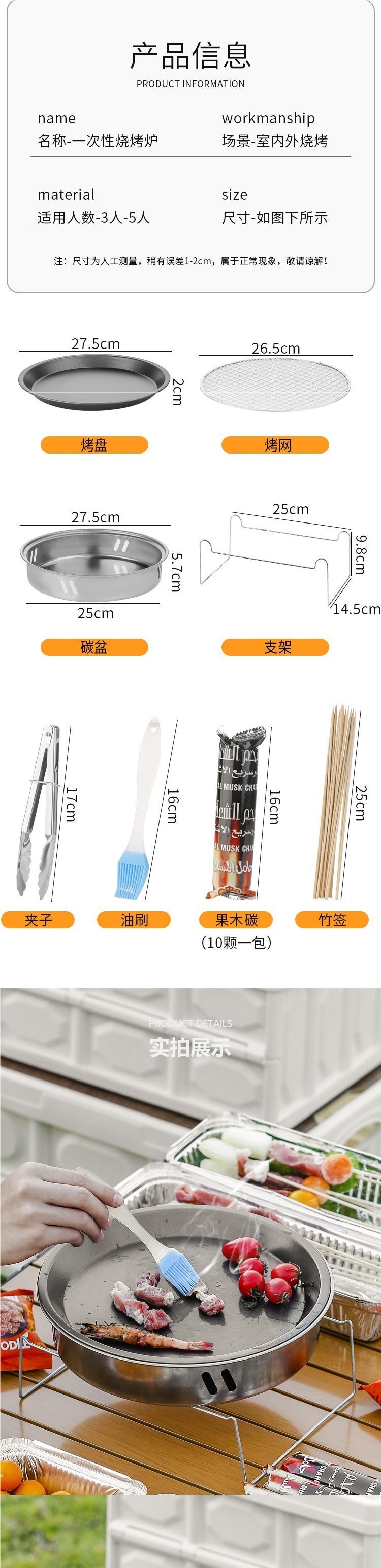 일회용 바베큐 그릴 소형 가정용 연기 그릴 피크닉 캠핑 휴대용 바베큐 숯 스토브 과일 숯 상업용스토어 가기