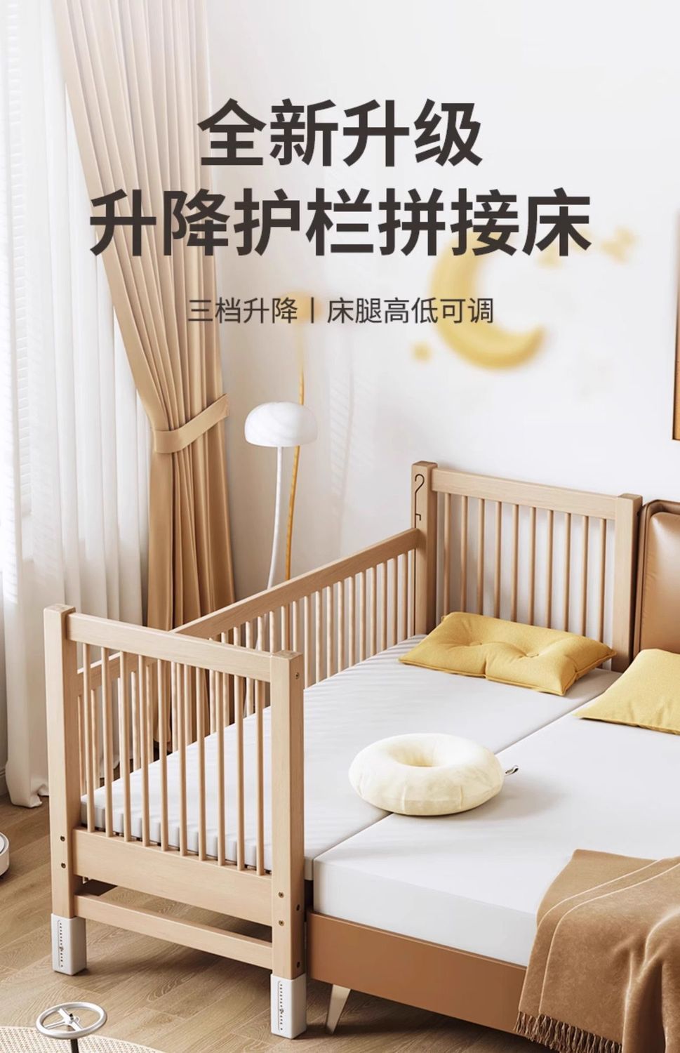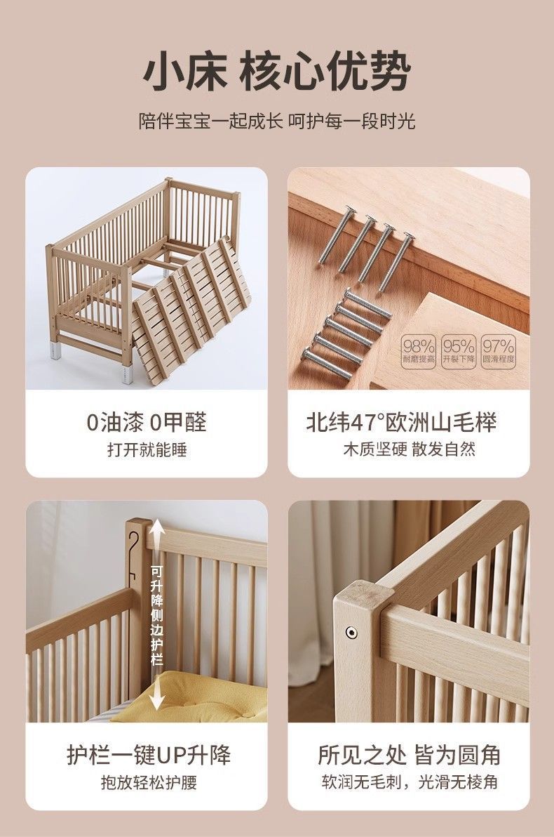 올브리더나무 어린이침대, 원목 유아용 침대 가드레일, 리프팅 가능한 유아용 침대, 대형 침대 접합, 침대 옆 확장