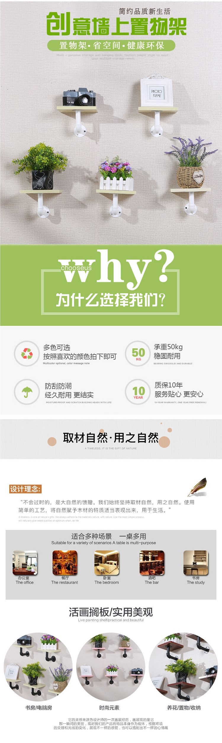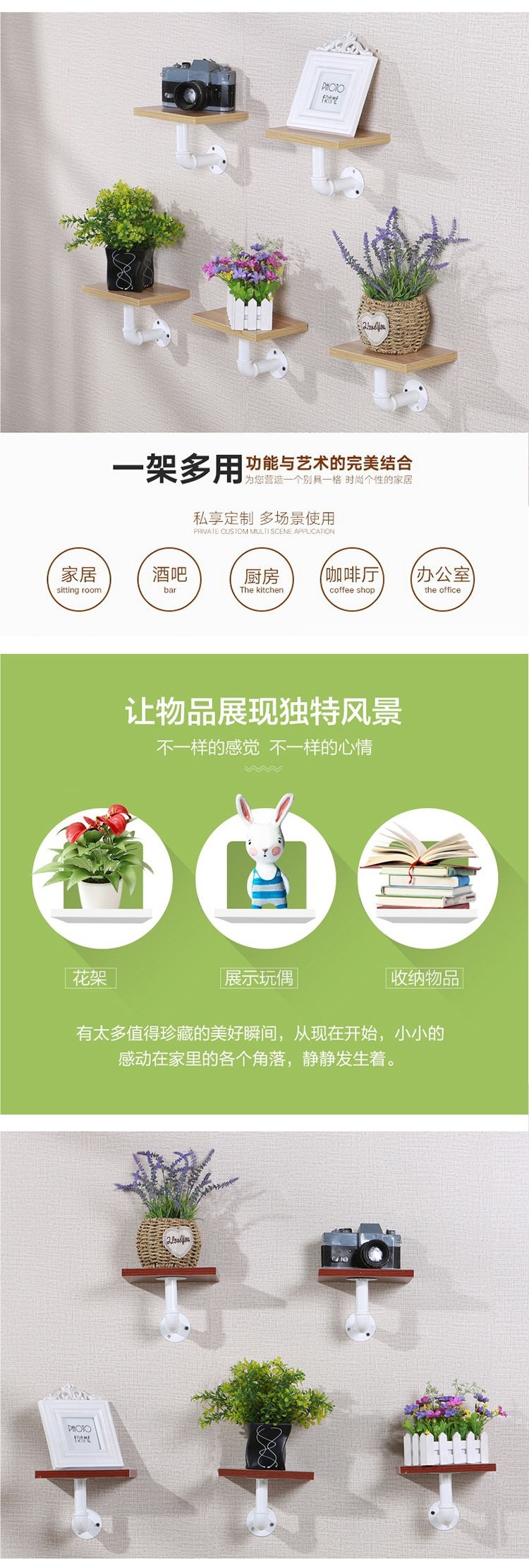벽걸이 선반, 벽걸이형 녹색 꽃걸이, 철제 선반, 거실 주방 장식 선반, 책장 공급