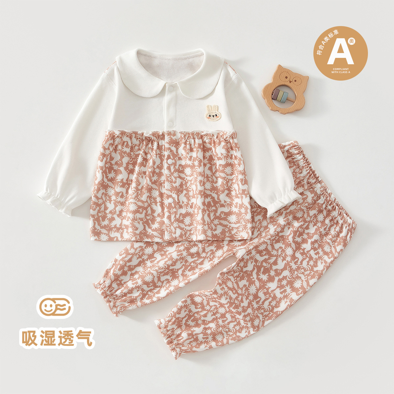아기 잠옷, 봄 여름 긴팔 양복, 가정복, 분할 아동 속옷, 에어컨 양복, 얇은 여아 및 남아 순면