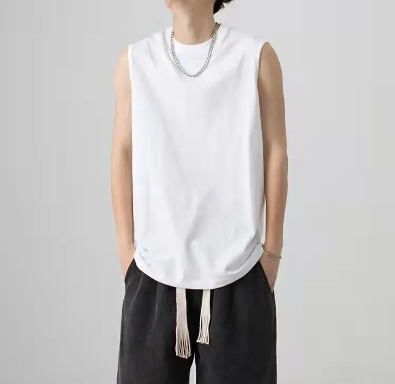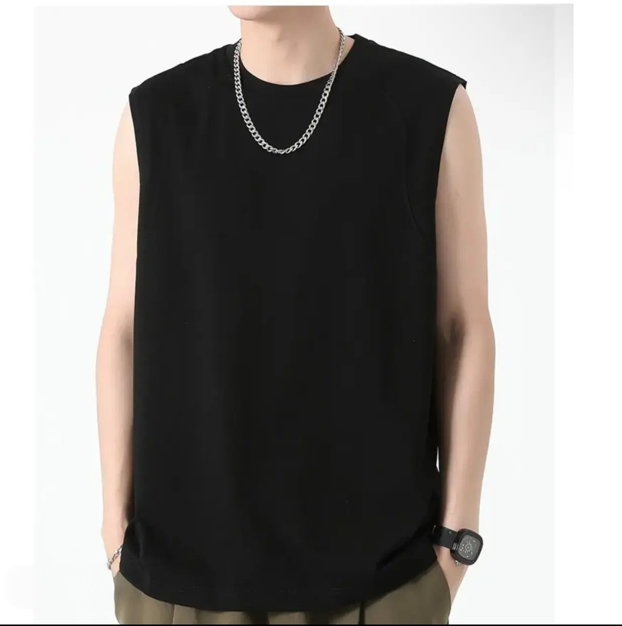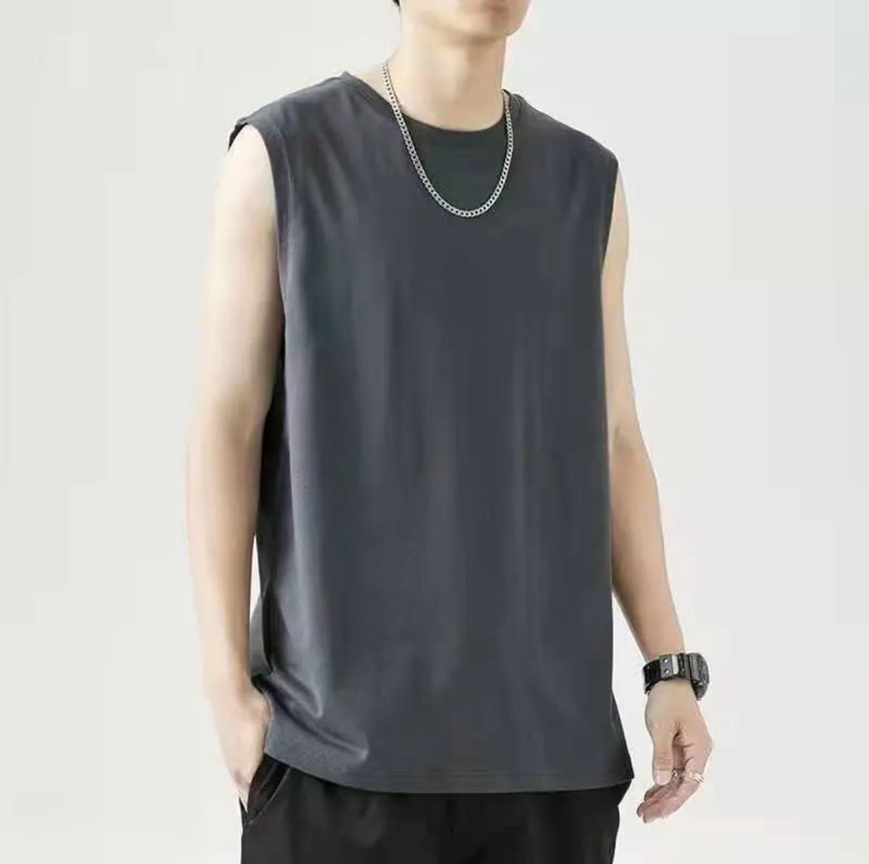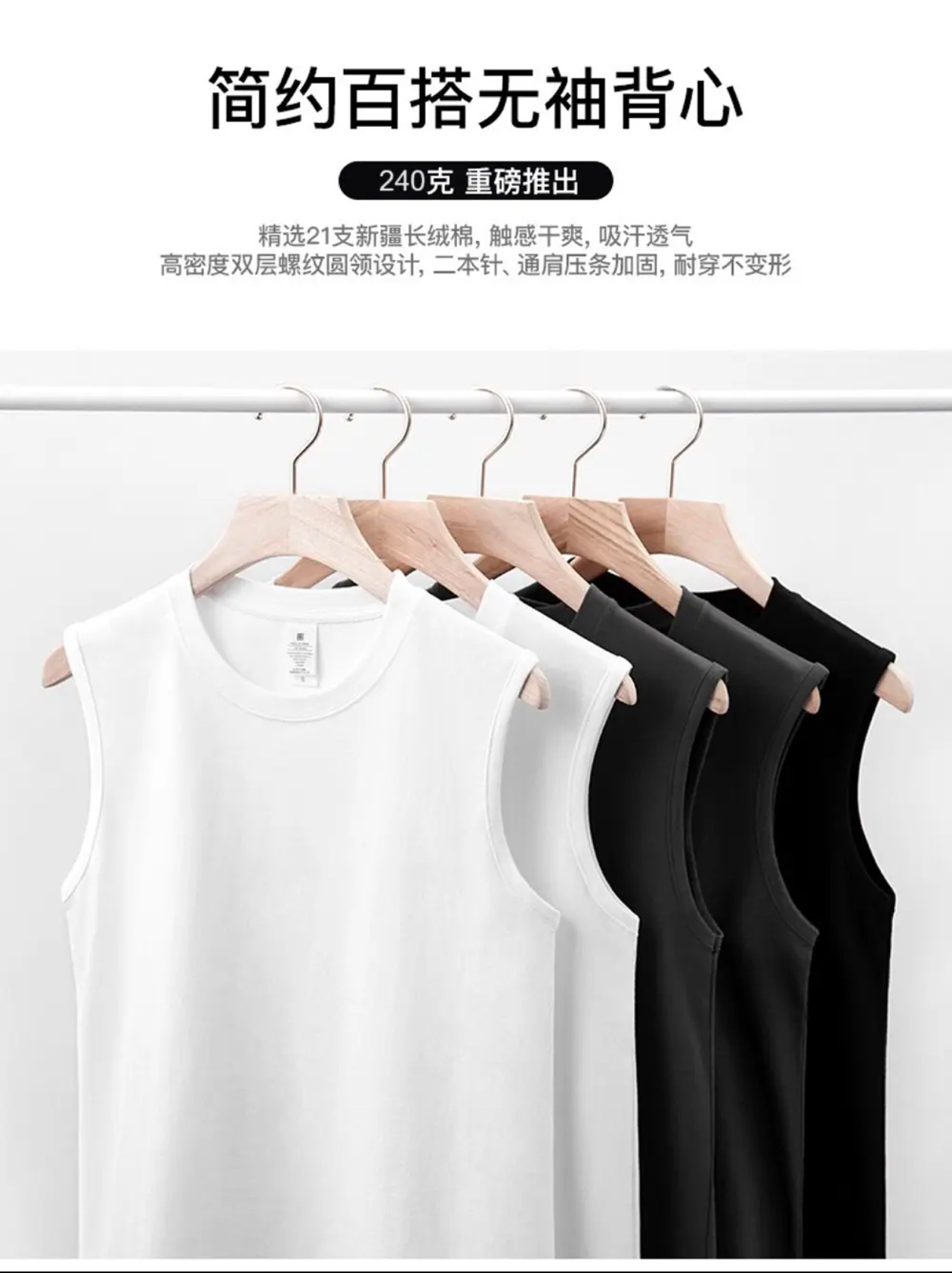 230g 일본 헤비급 순수 코튼 여름 기본 와이드 숄더 작은 네크라인 솔리드 컬러 루즈 남성 및 여성 조끼 남성 티셔츠