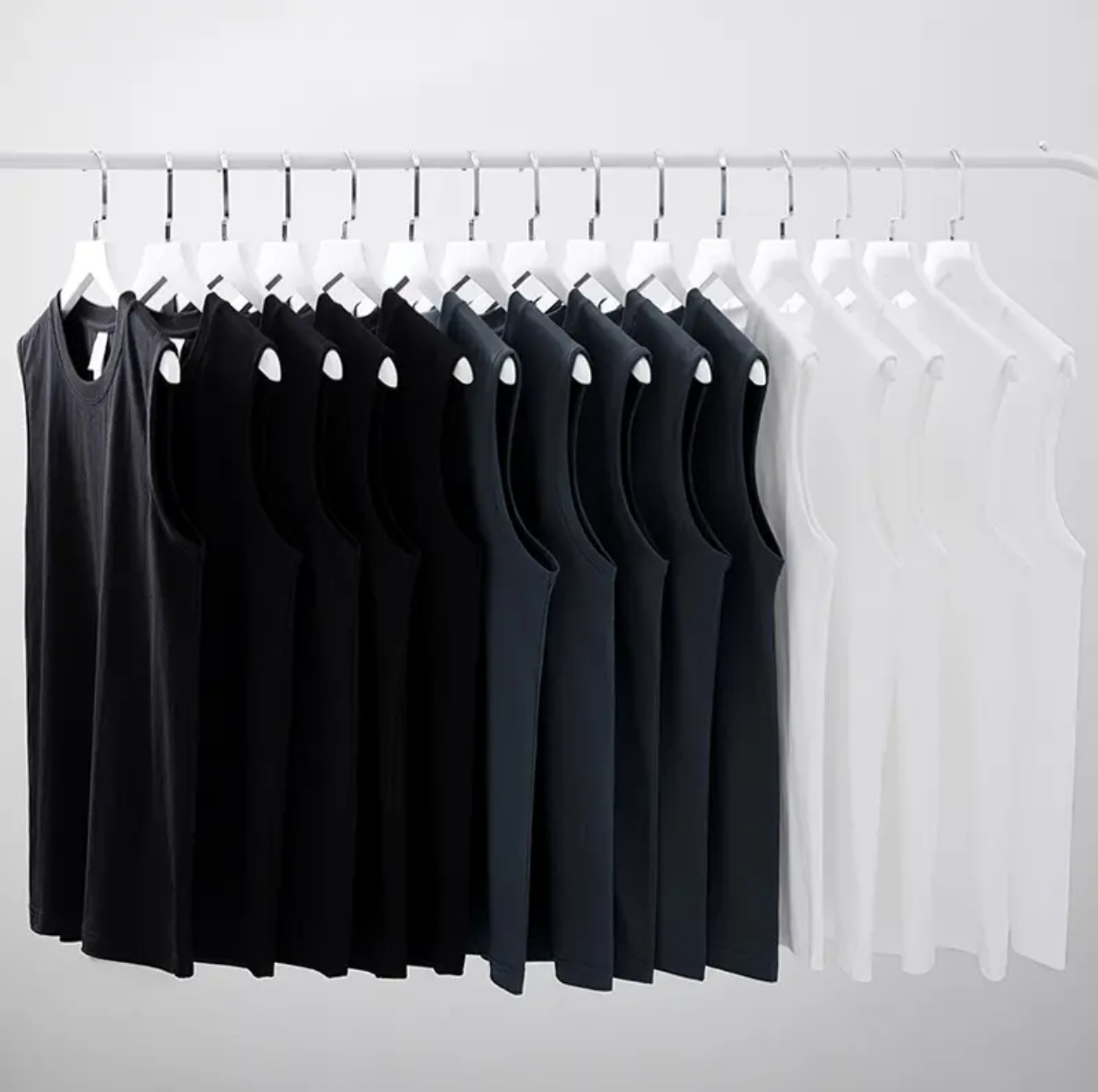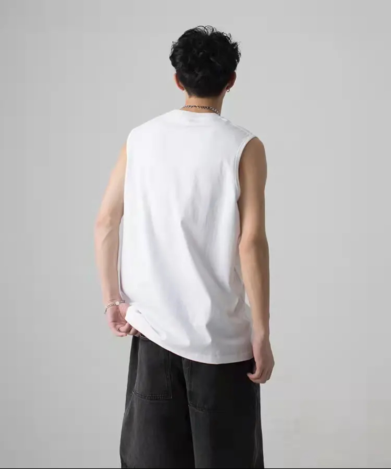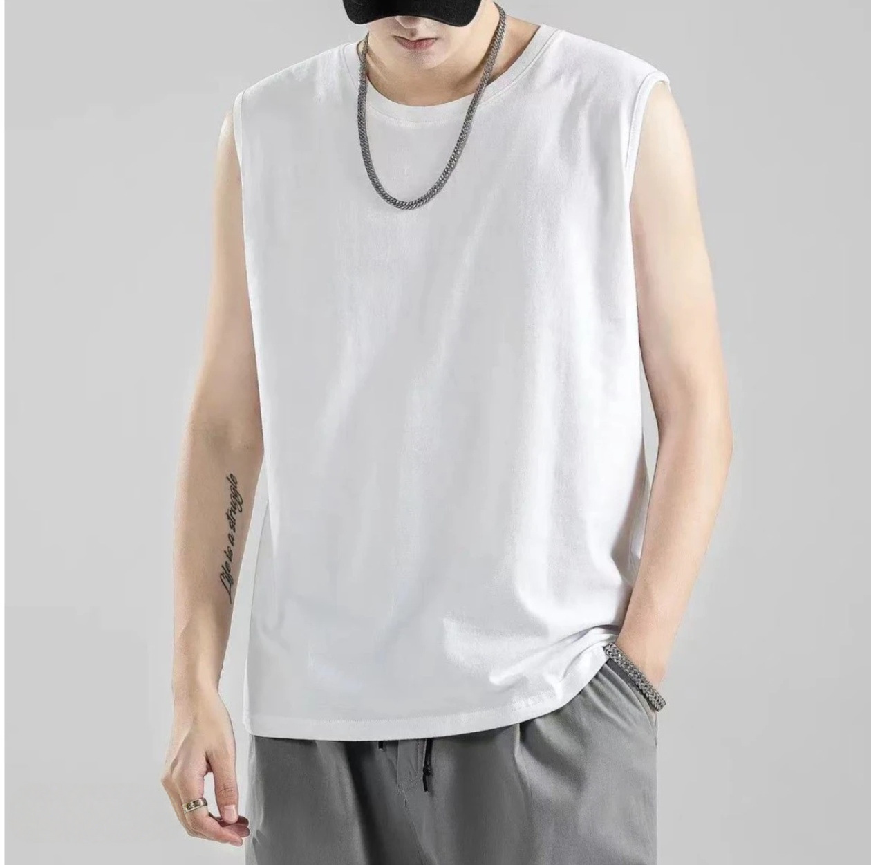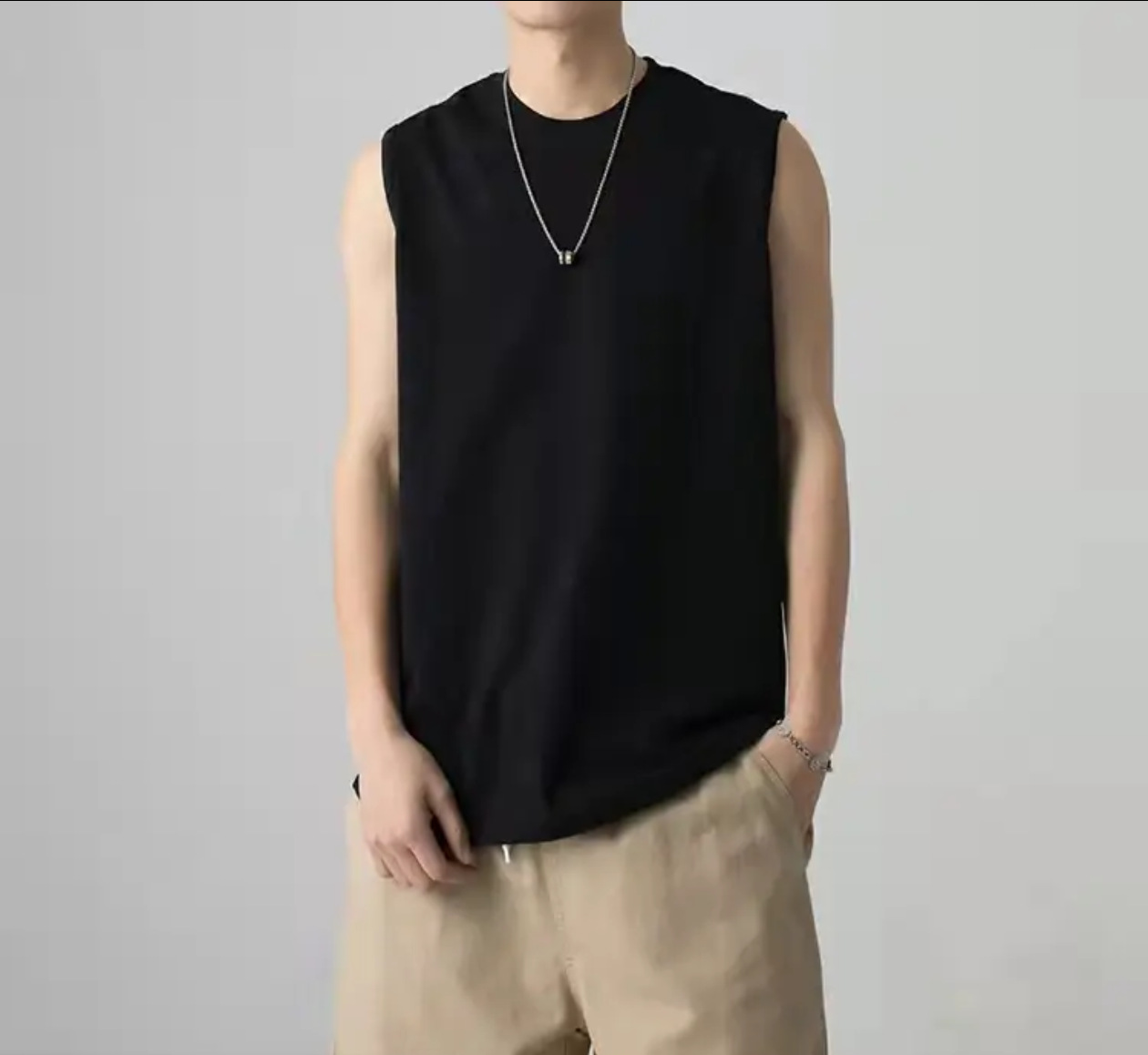 230g 일본 헤비급 순수 코튼 여름 기본 와이드 숄더 작은 네크라인 솔리드 컬러 루즈 남성 및 여성 조끼 남성 티셔츠