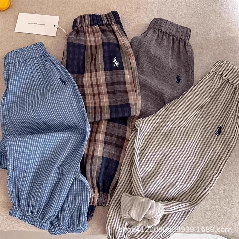 어린이 면 거즈 모기 방지 바지 소년과 소녀를위한 여름 얇은 통기성 캐주얼 바지 아기 여름 느슨한 다용도 레깅스스토어 가기