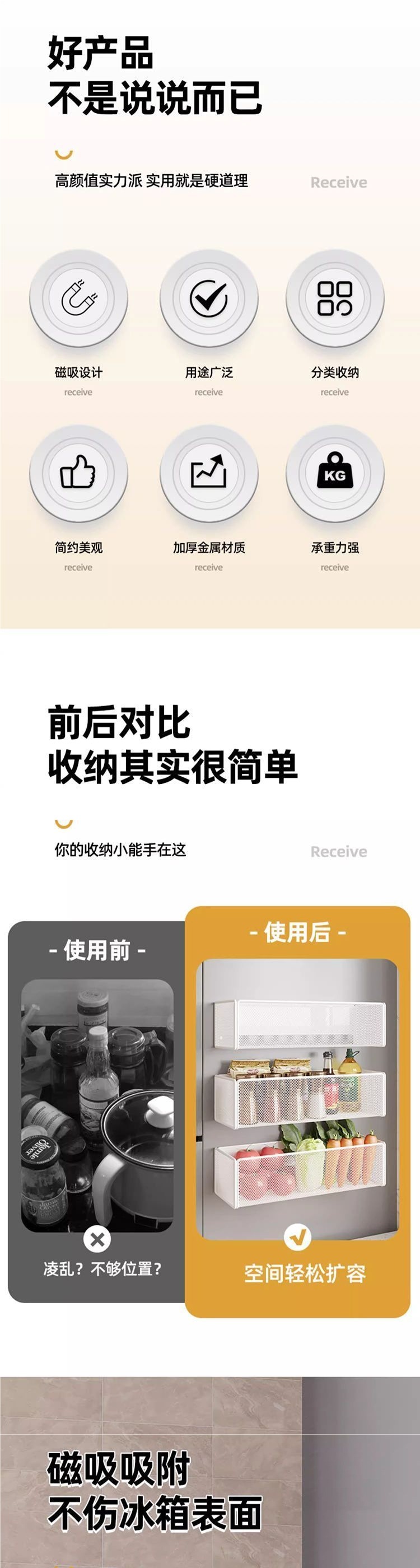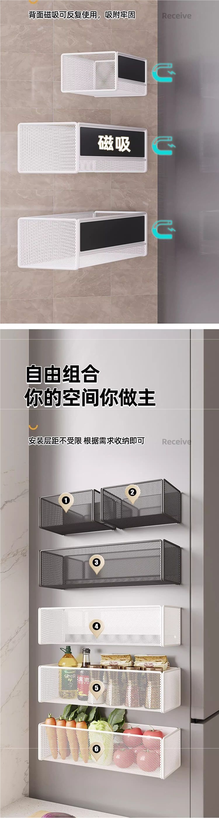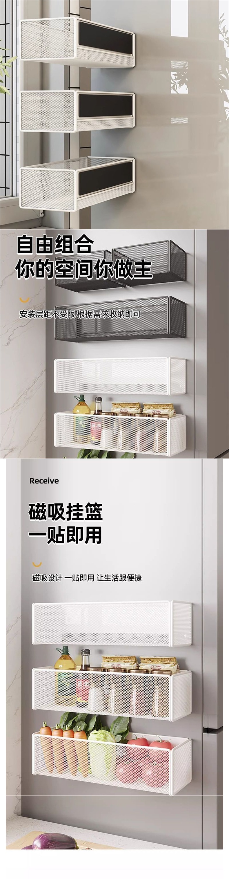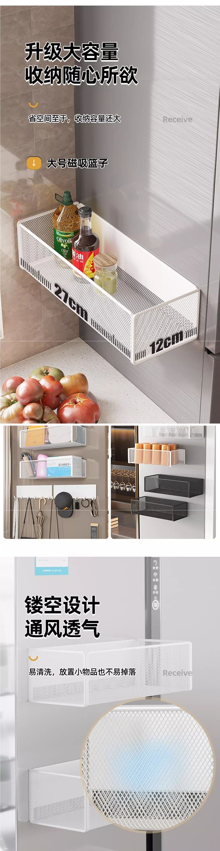 냉장고 자석 수납선반, 펀치 없는 주방 벽걸이 접착 필름, 티슈, 양념 바구니