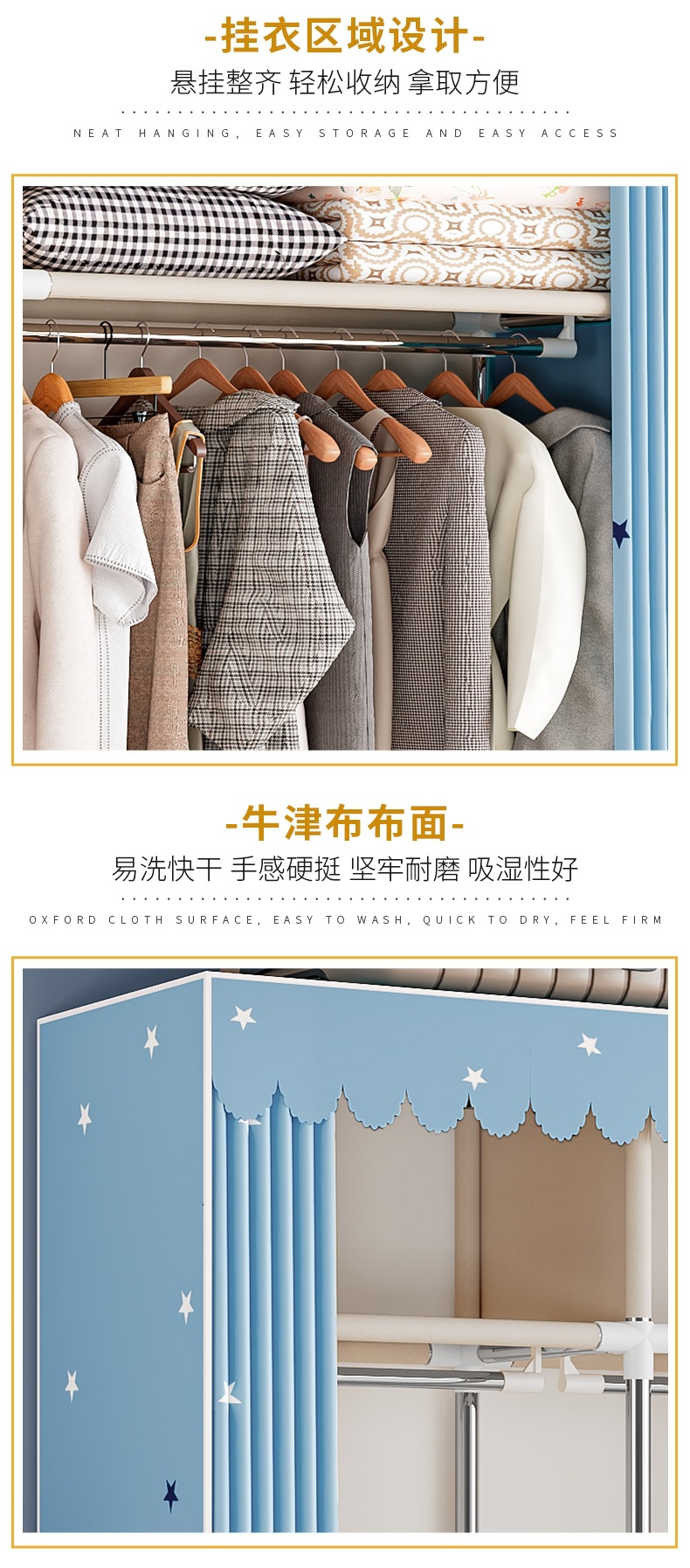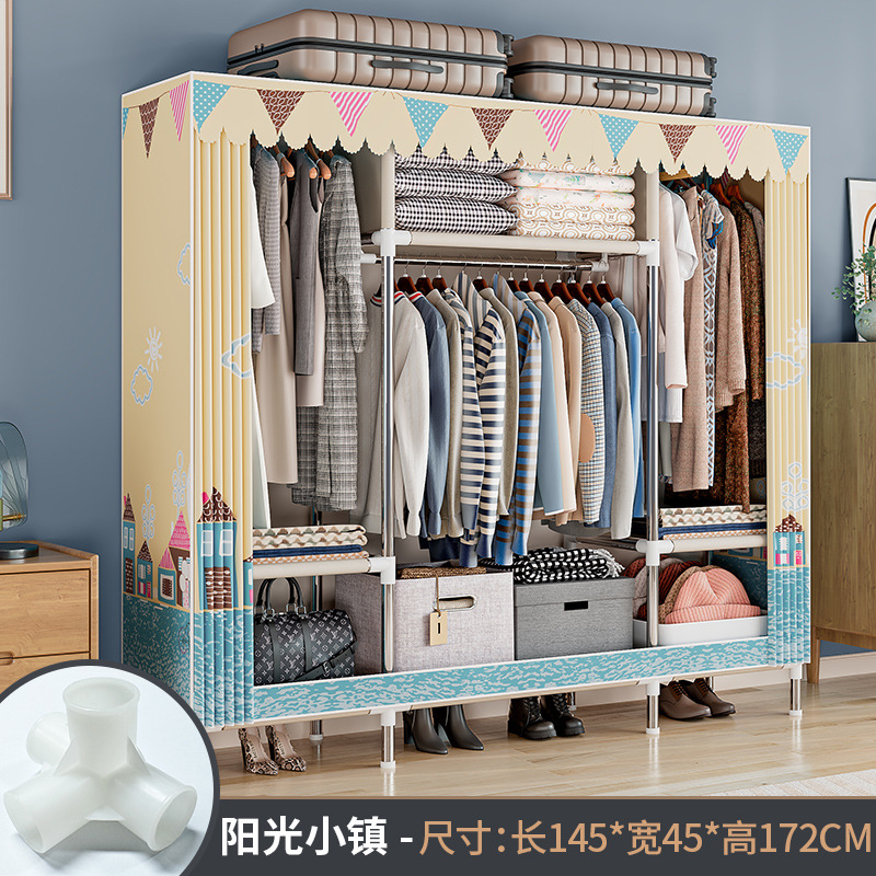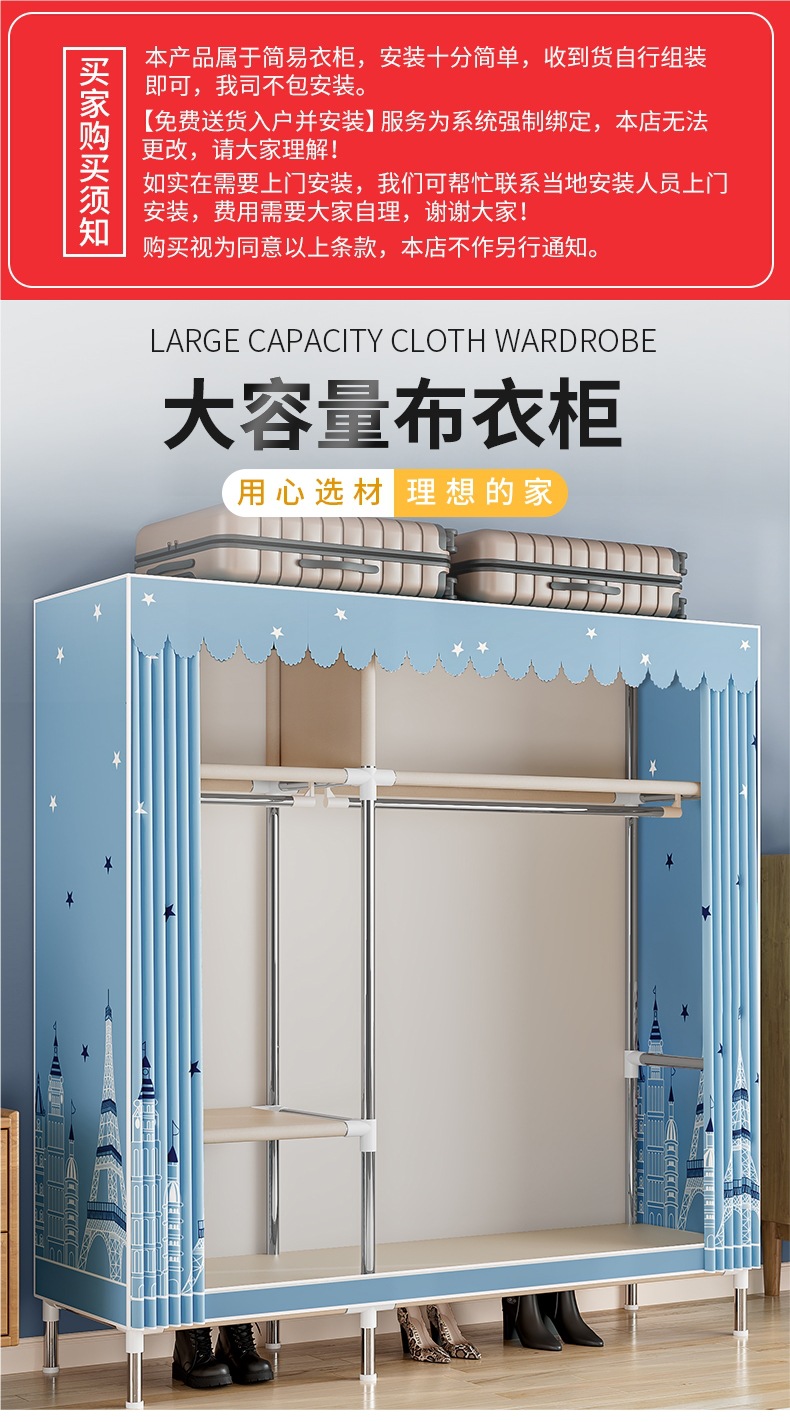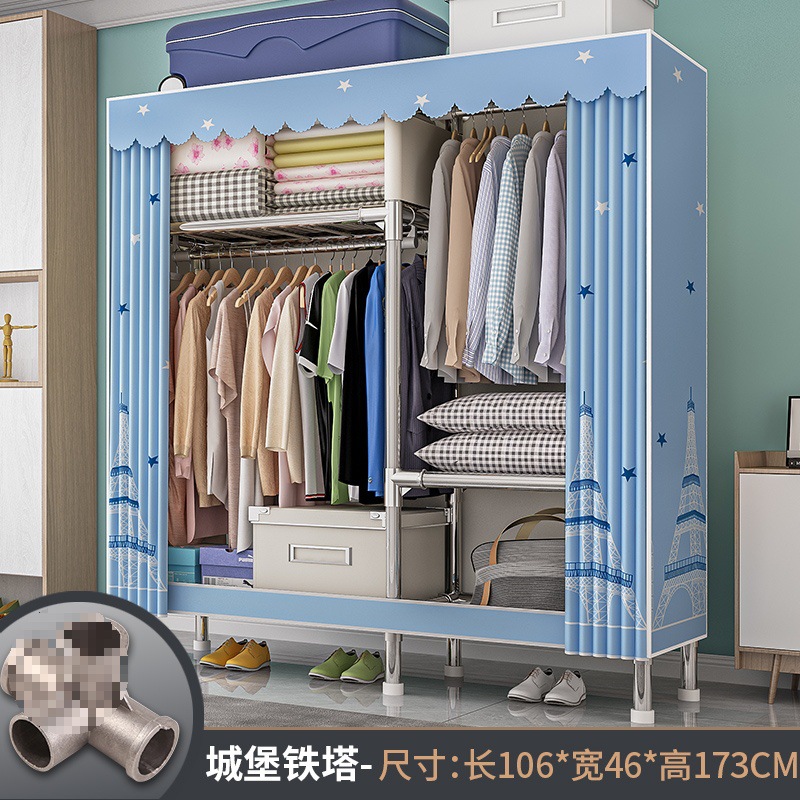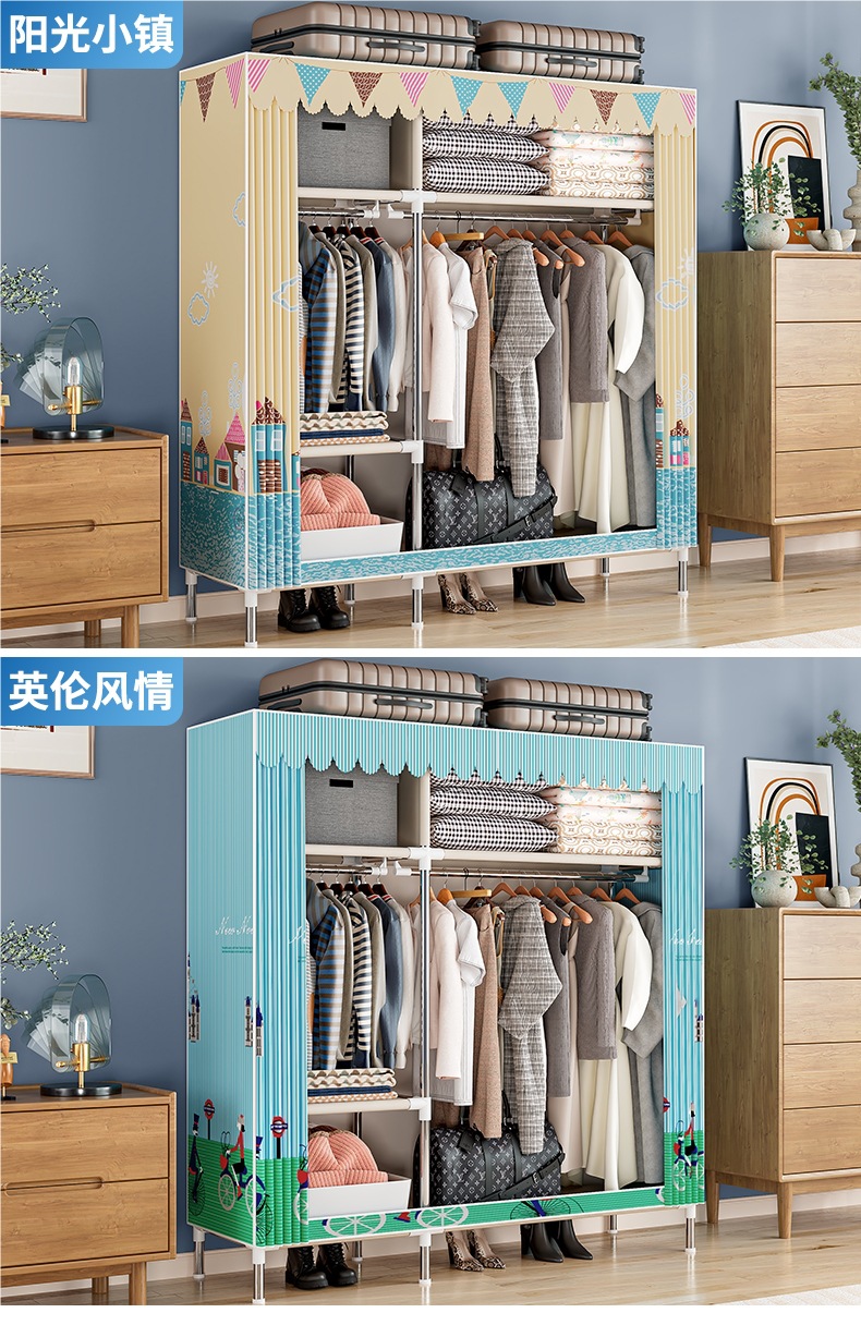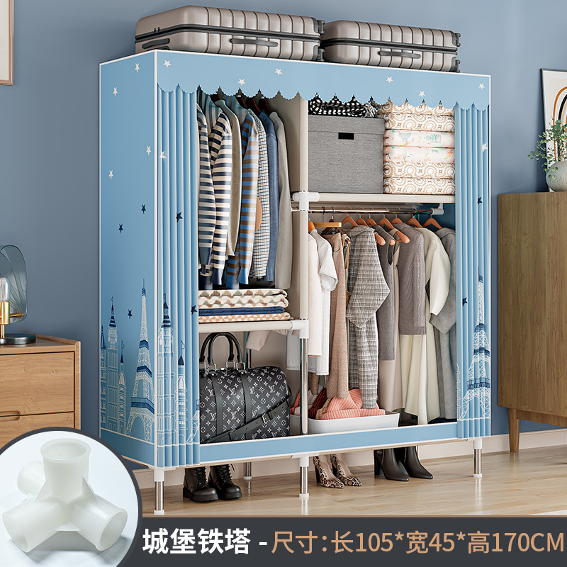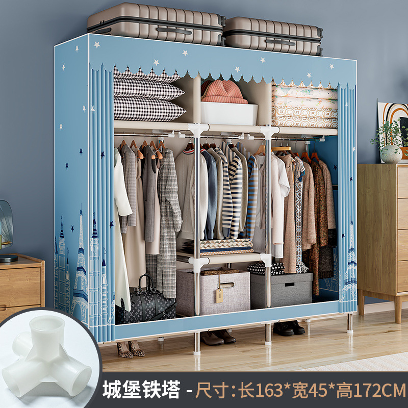 간단한 옷장, 가정용 침실 천 옷장, 임대 주택용 조립식 보관 캐비닛, 튼튼하고 내구성이 뛰어난 전체 강철 프레임 옷장스토어 가기