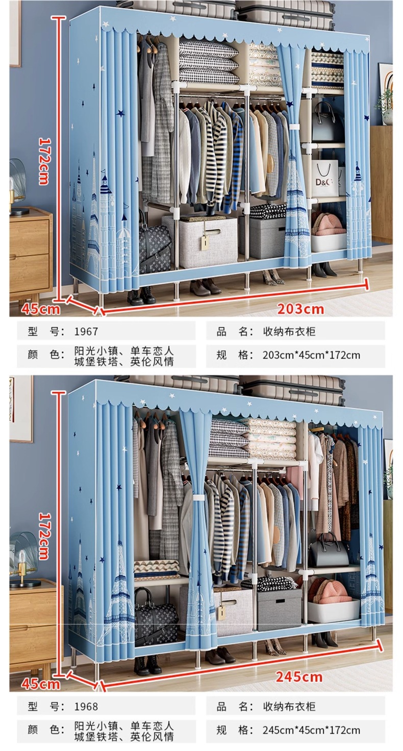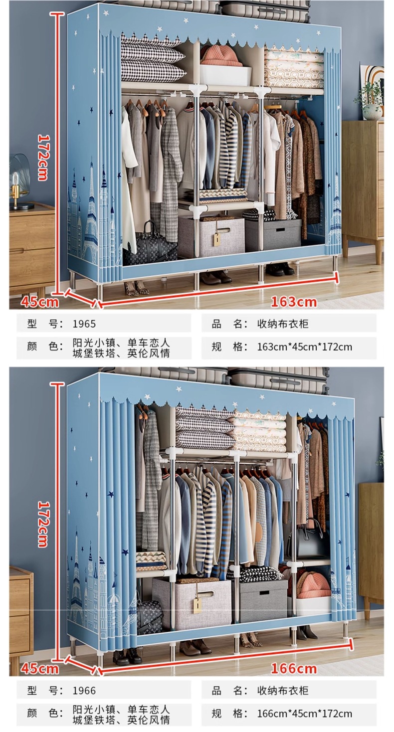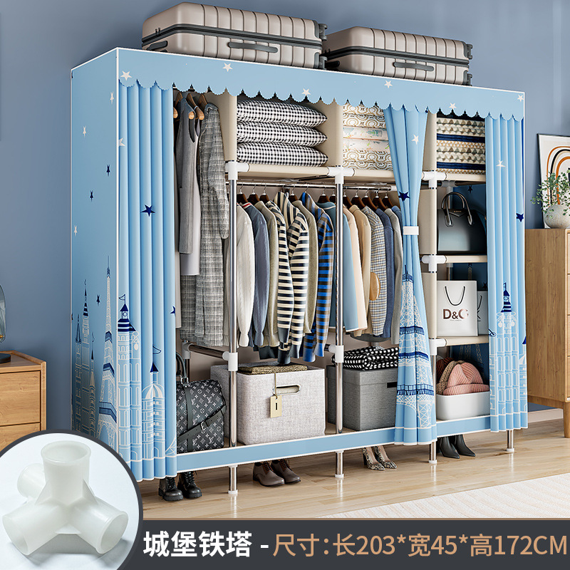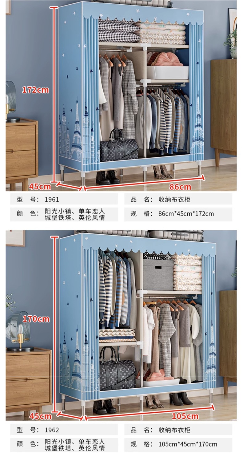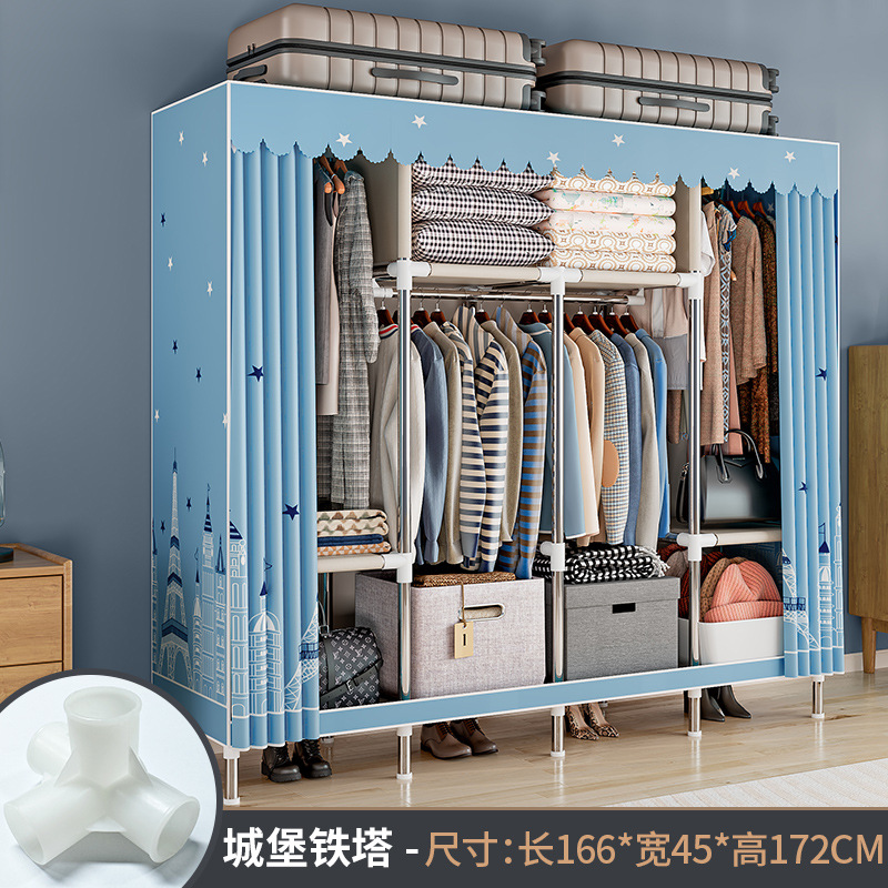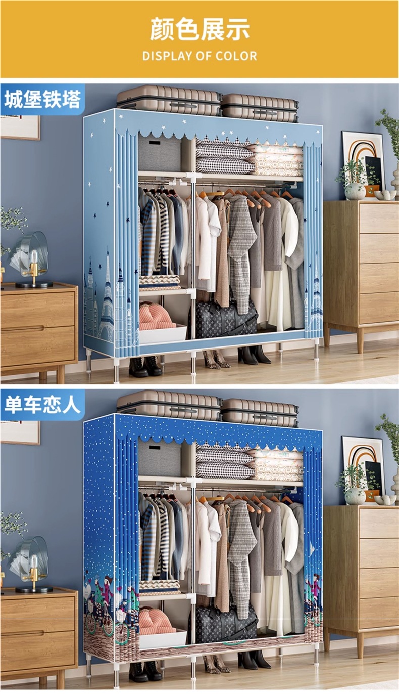 간단한 옷장, 가정용 침실 천 옷장, 임대 주택용 조립식 보관 캐비닛, 튼튼하고 내구성이 뛰어난 전체 강철 프레임 옷장스토어 가기