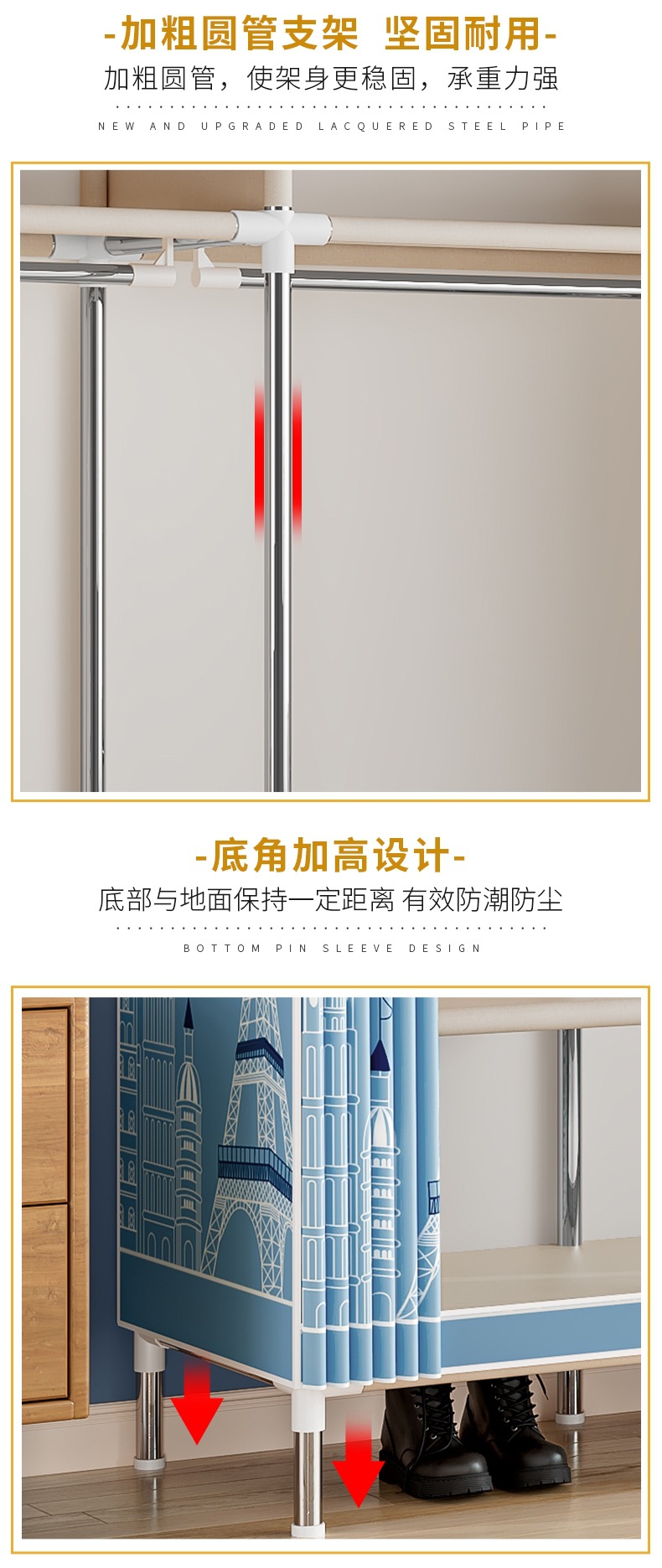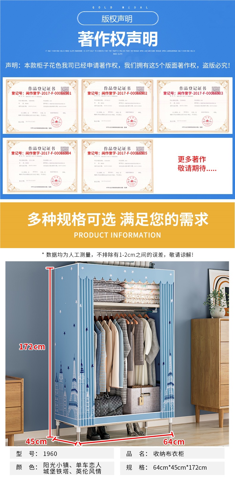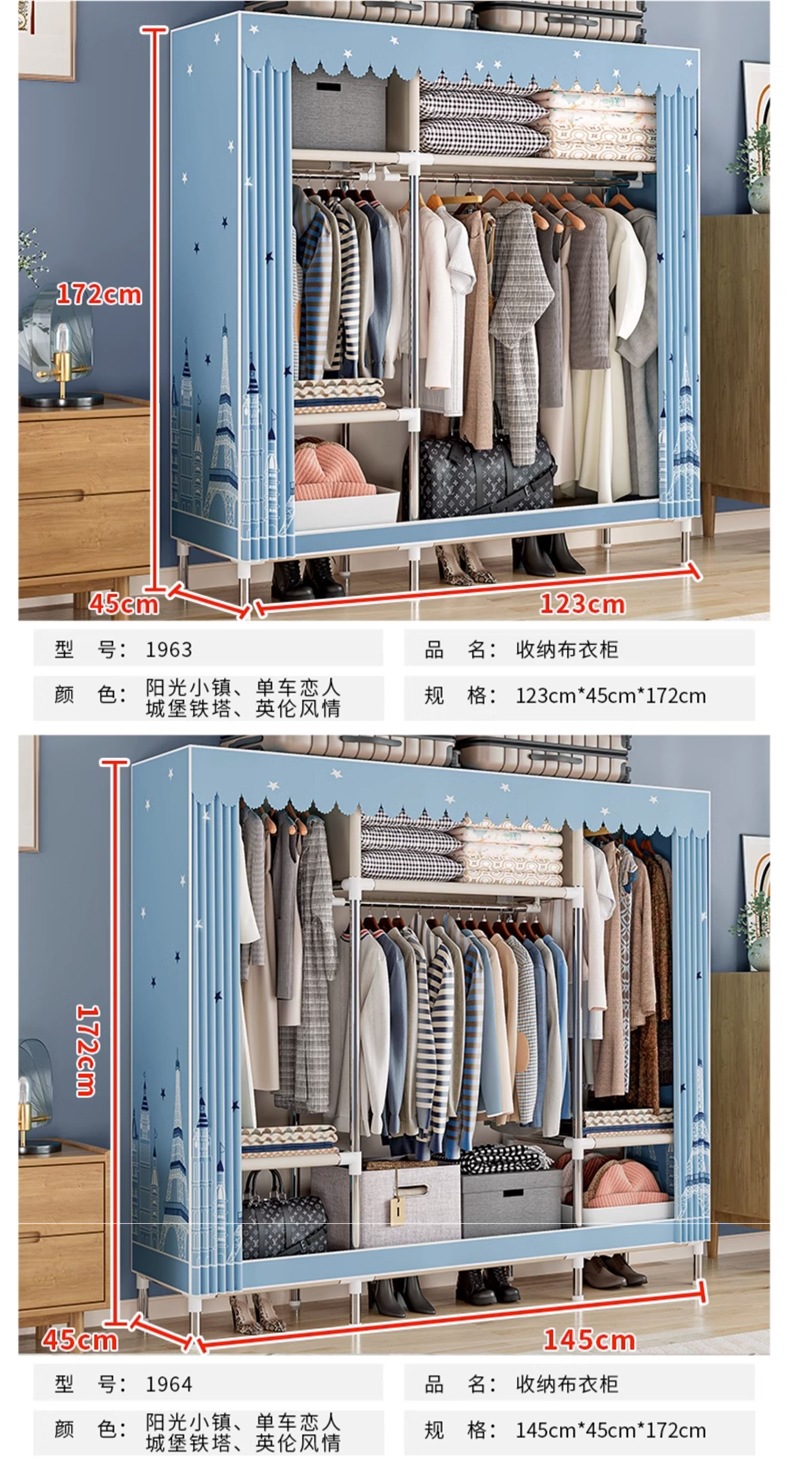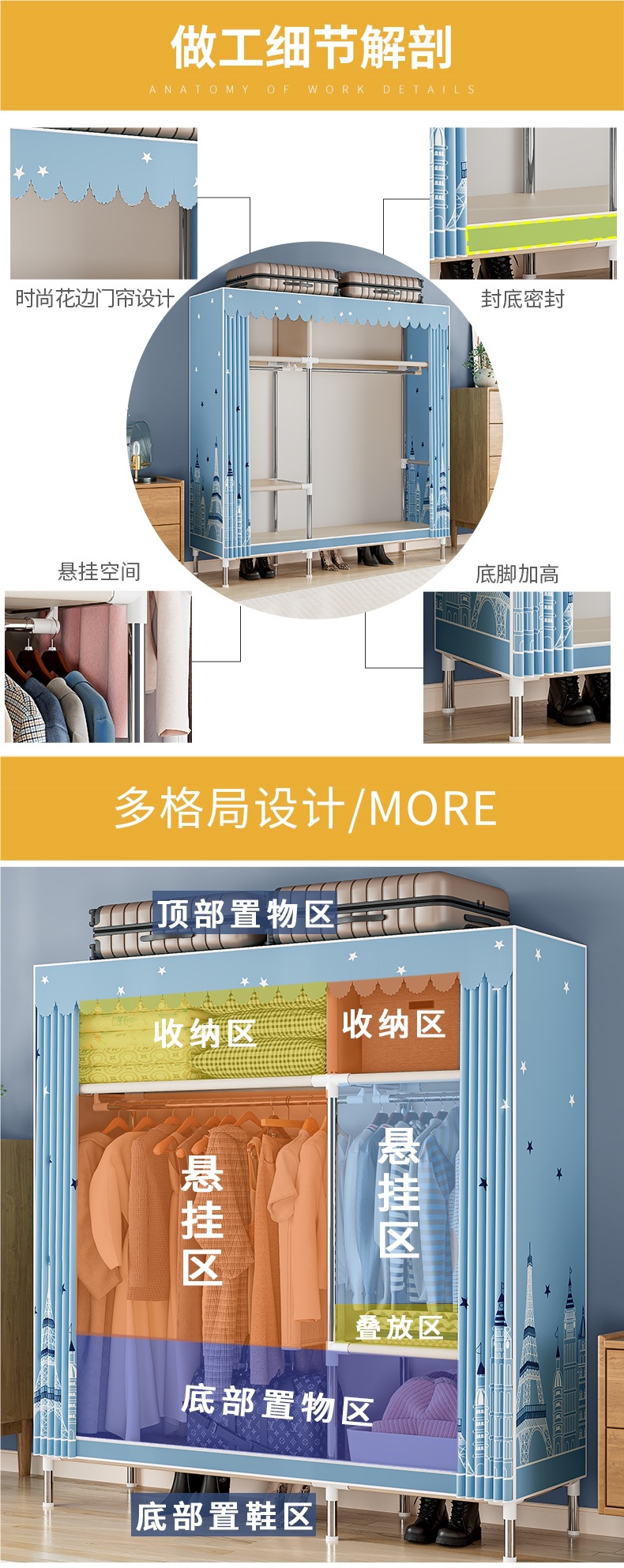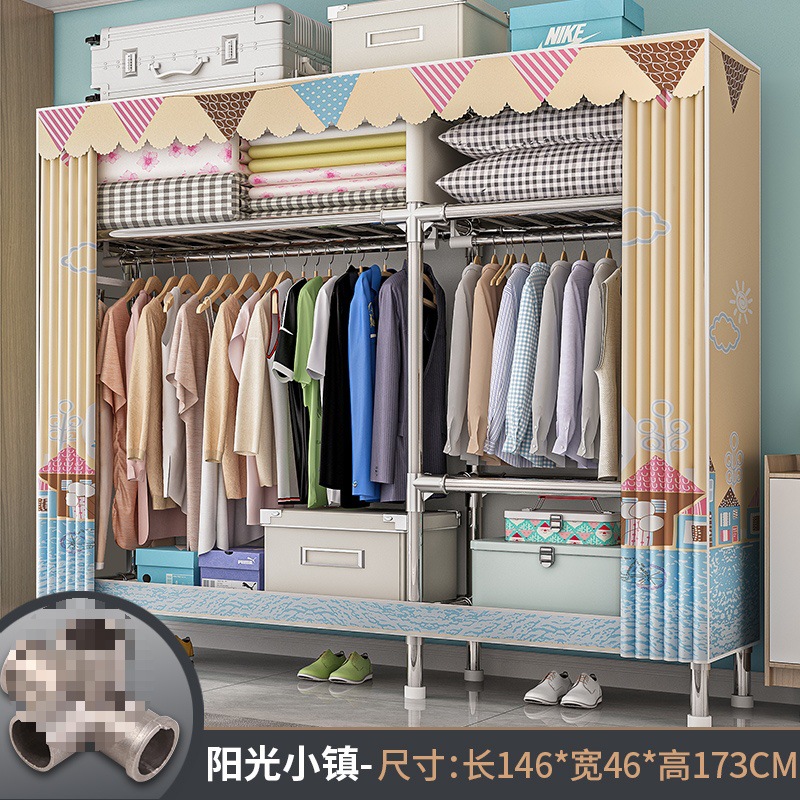 간단한 옷장, 가정용 침실 천 옷장, 임대 주택용 조립식 보관 캐비닛, 튼튼하고 내구성이 뛰어난 전체 강철 프레임 옷장스토어 가기