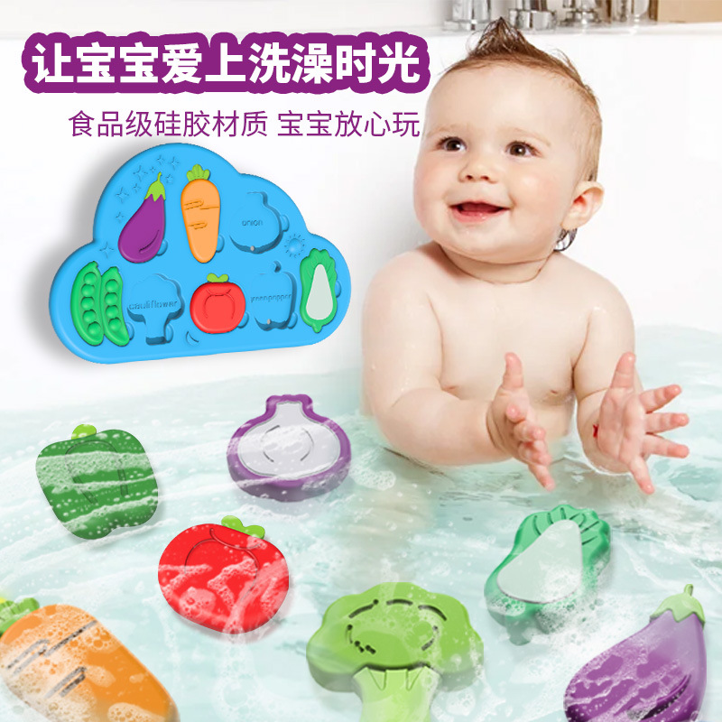 국경 간 신제품 아기 목욕 장난감 다기능 크리 에이 티브 실리콘 야채 작은 요리사 실리콘 어린이 물 장난감스토어 가기
