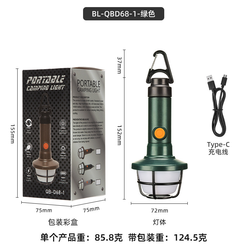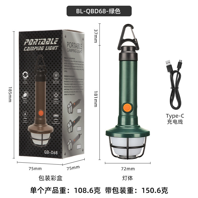 국경 간 손전등 LED 작업 조명 캠핑 조명 휴대용 램프 손전등 다기능 캠핑 충전식 손전등