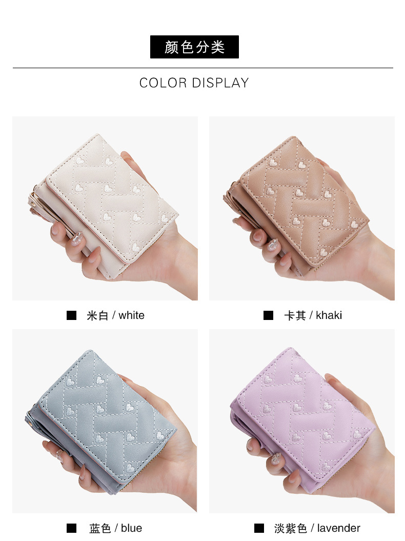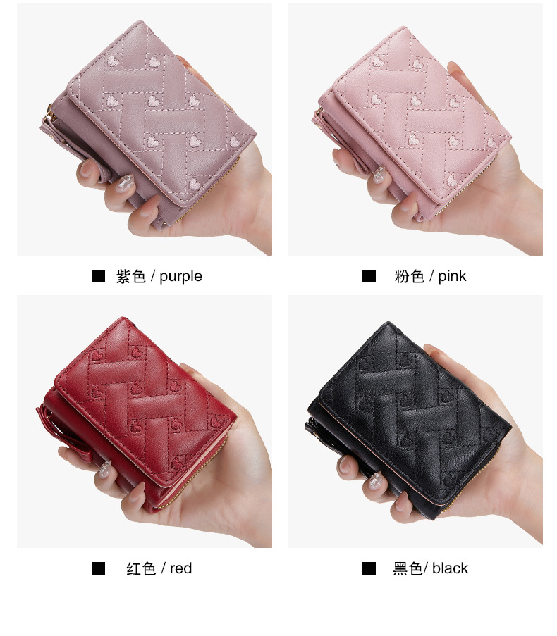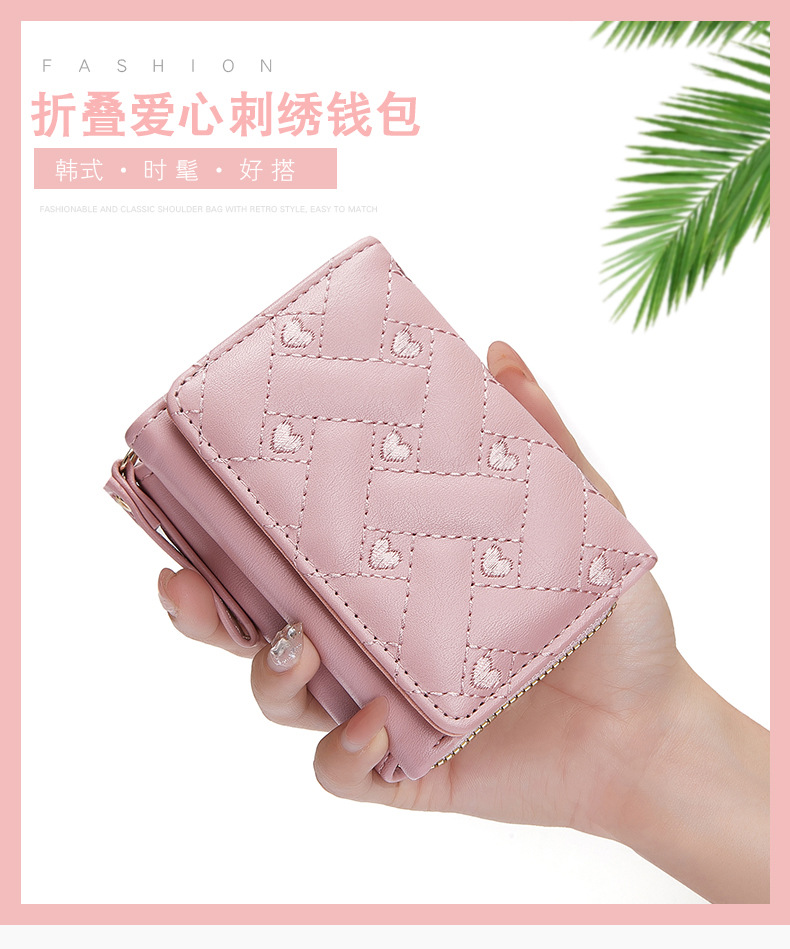 공장 새 여성용 짧은 지갑 간단한 수 놓은 사랑 PU 80% off 가방 카드 홀더 멀티 카드 슬롯 지갑 도매스토어 가기