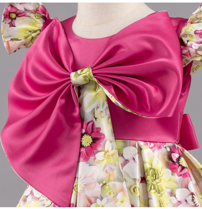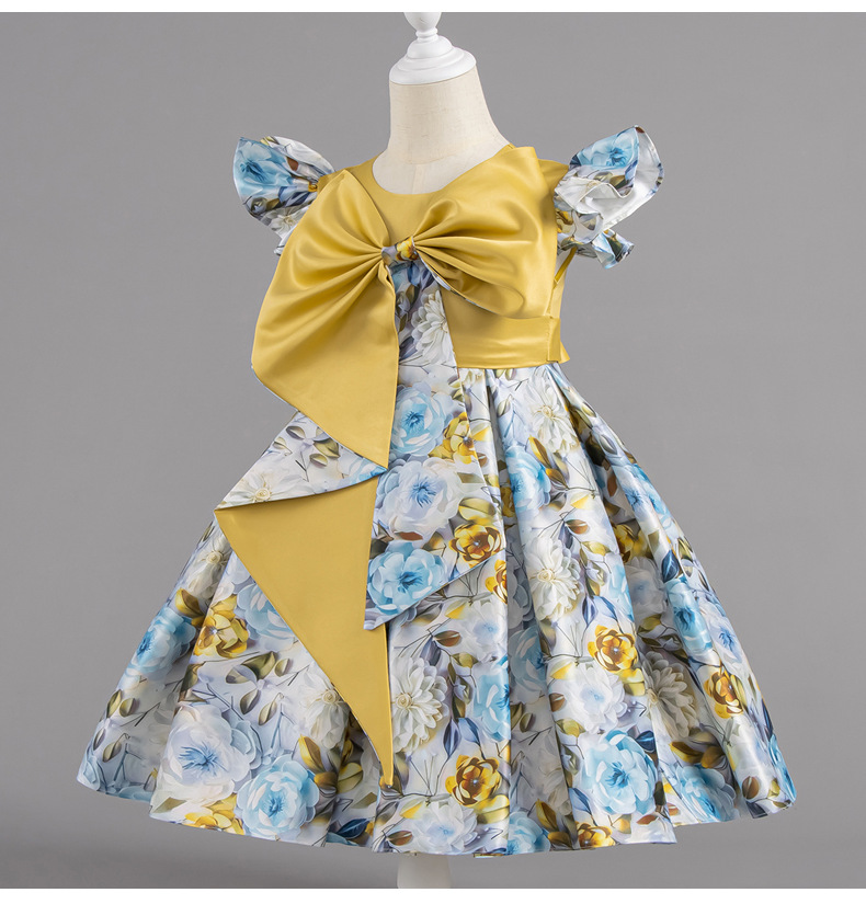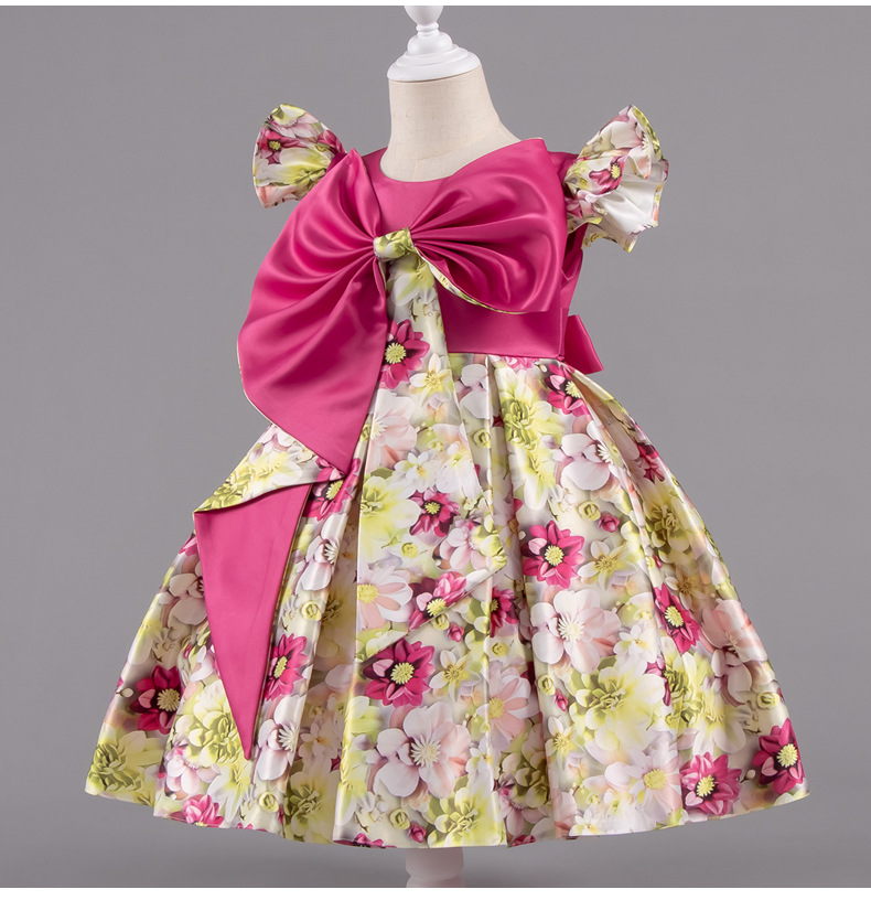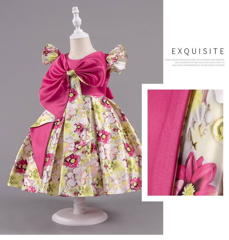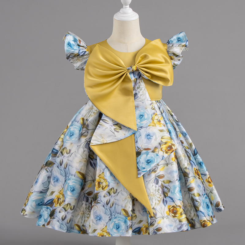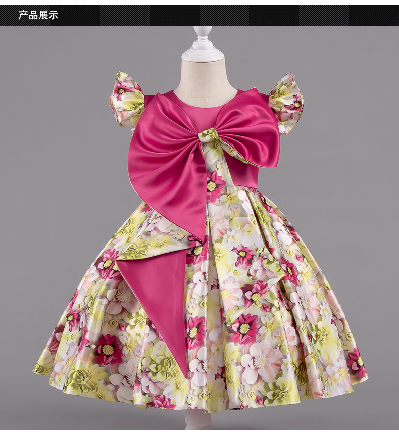 여자 여름 유럽과 미국 스타일의 큰 활 꽃 프린트 드레스 어린이 공주 스타일 달콤한 서양식 스커트