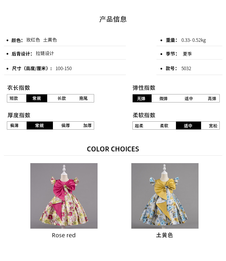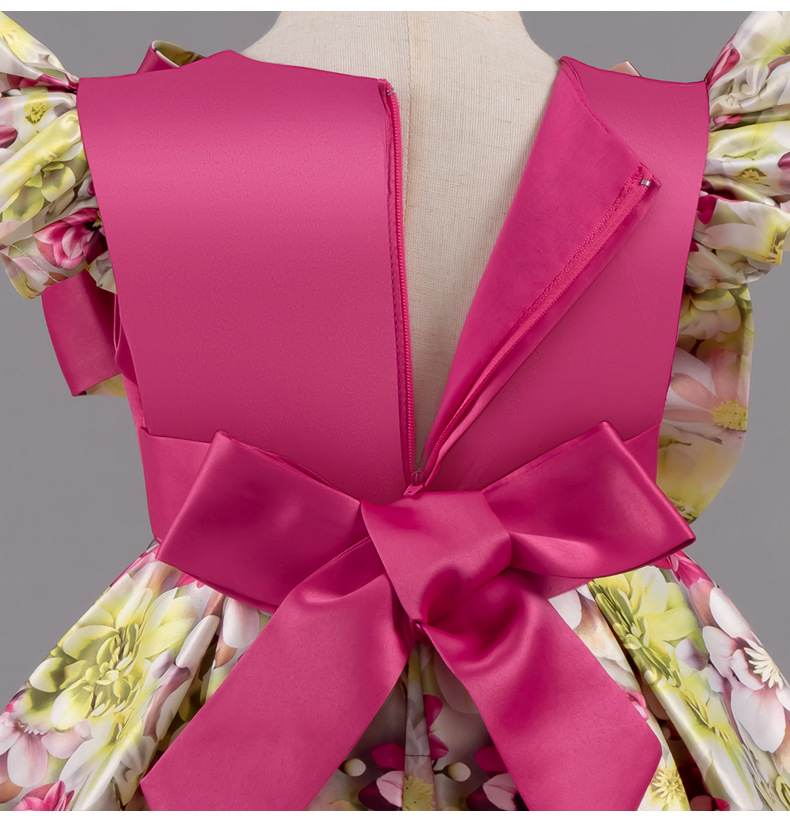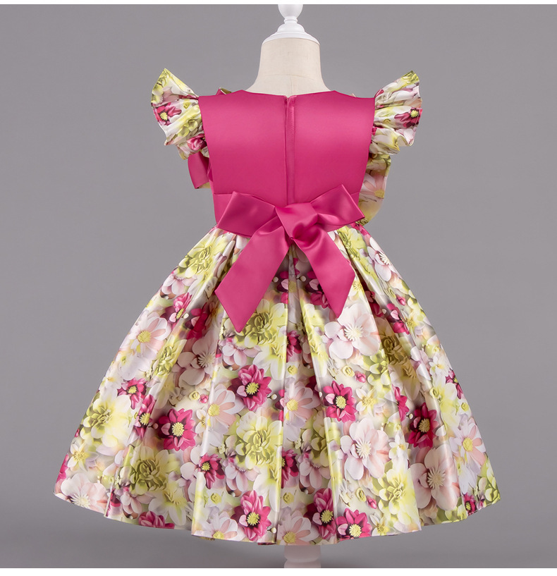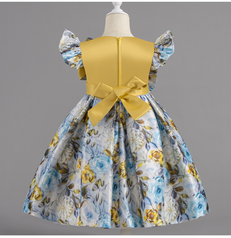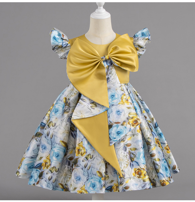 여자 여름 유럽과 미국 스타일의 큰 활 꽃 프린트 드레스 어린이 공주 스타일 달콤한 서양식 스커트