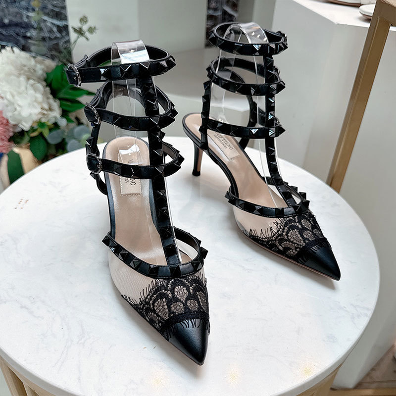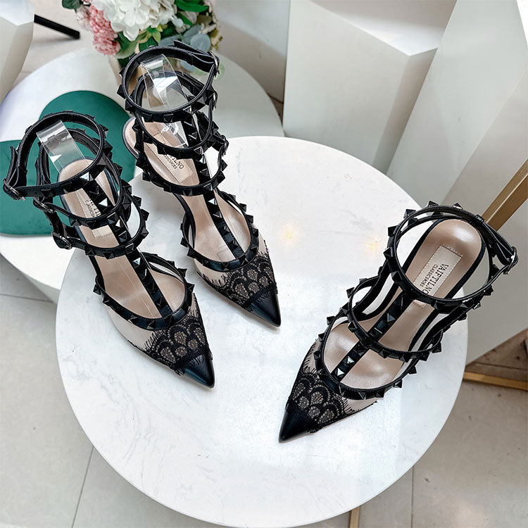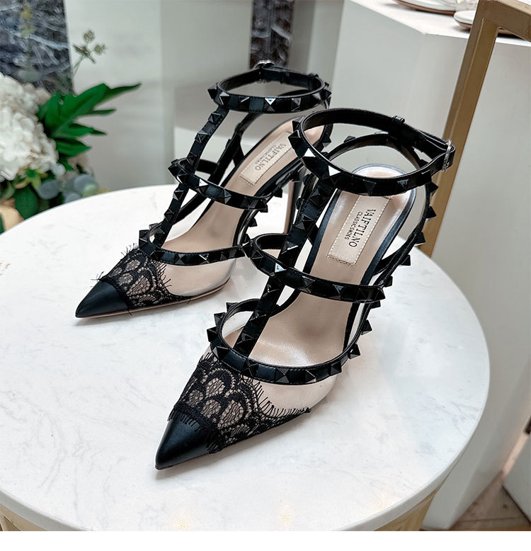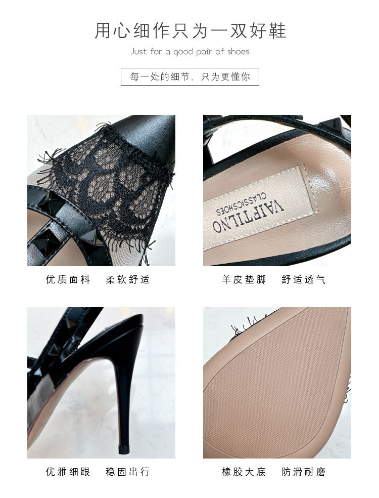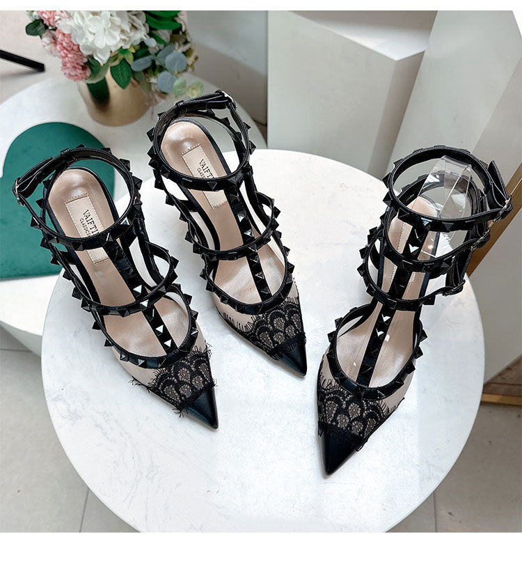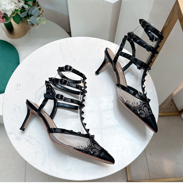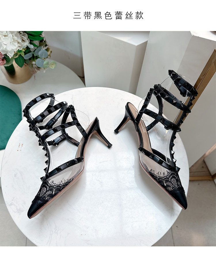 레이스 리벳 하이힐 스틸레토 2026 여름 신상 패션 명사 인플루언서 V네트워크 메쉬 포인티드 토 샌들 여성용