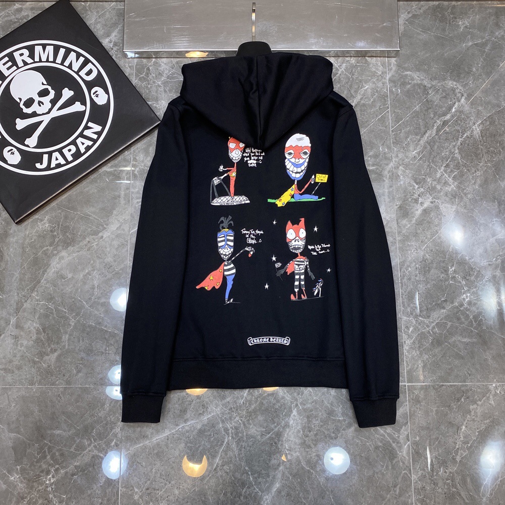 고품질 크로스보더 크롬 하트 산스크리트 크로스 다크 패턴 프린트 카디건 지퍼 스웨트셔츠스토어 가기
