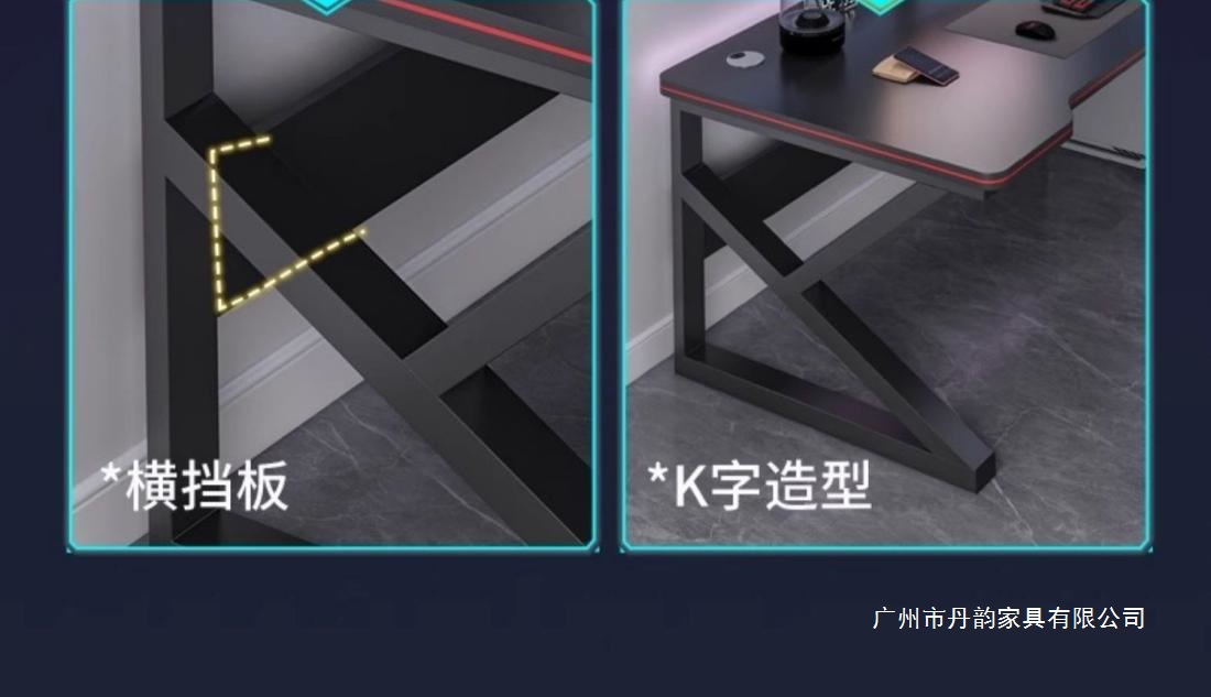 • [이중실 구멍] 160cm 다크블랙 + 블랙 프레임 K자형 테이블 다리