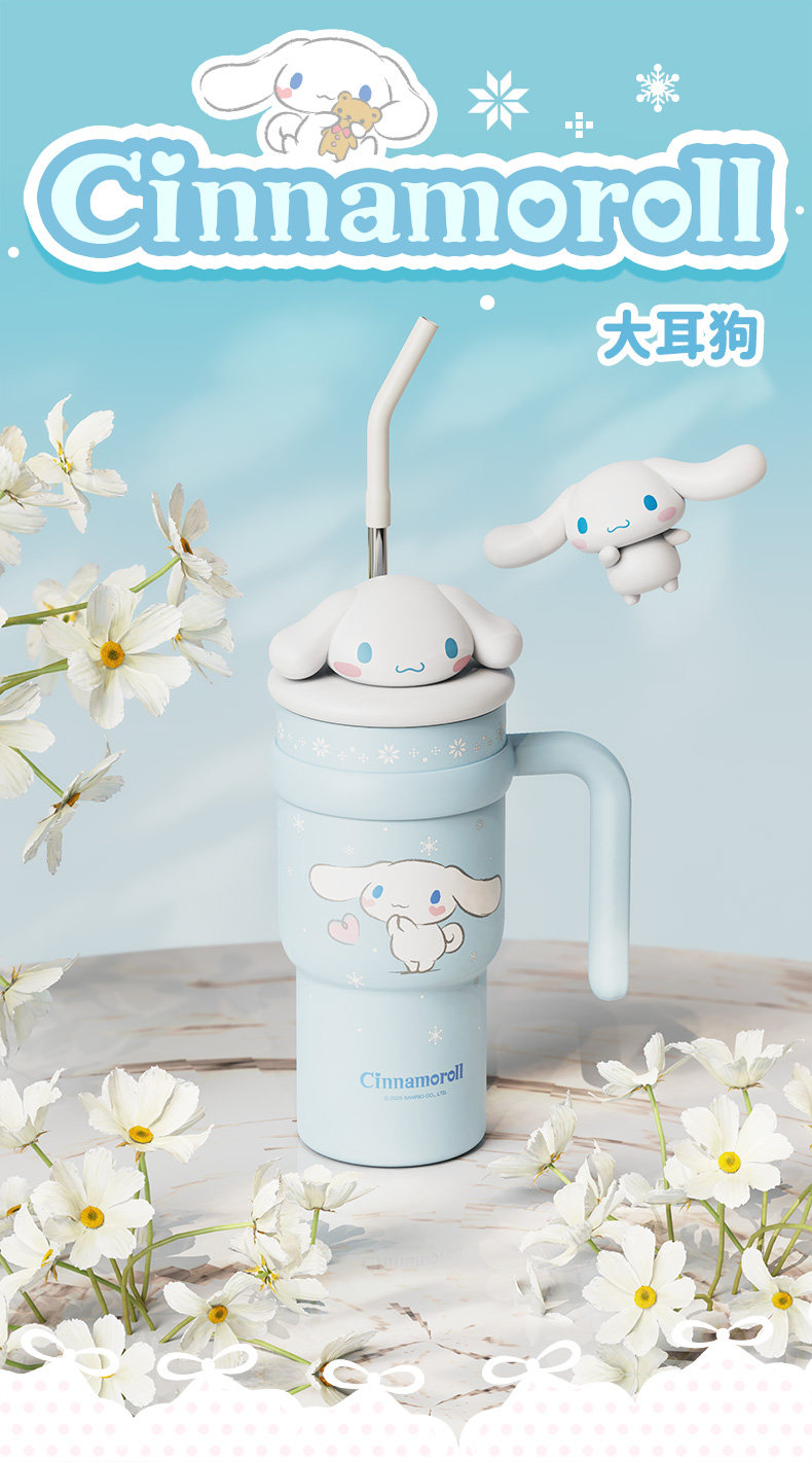 헬로키티 보온병 컵 소녀 대용량 헬로키티 콜드 컵 빅맥 아이스 컵 밀짚 컵