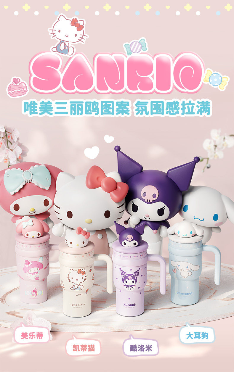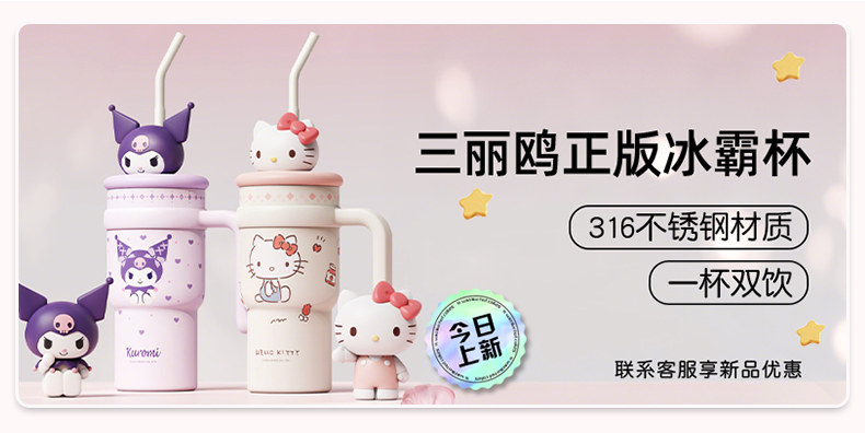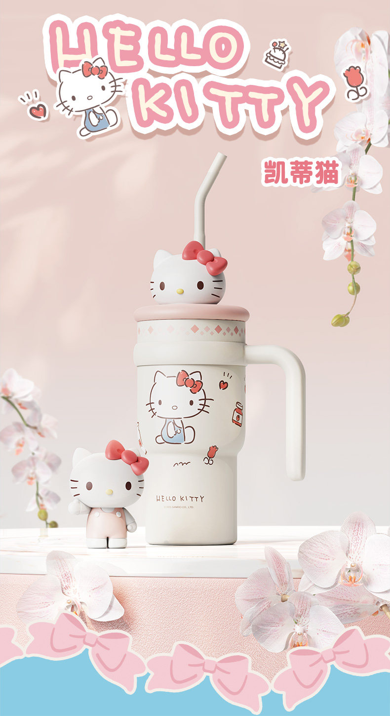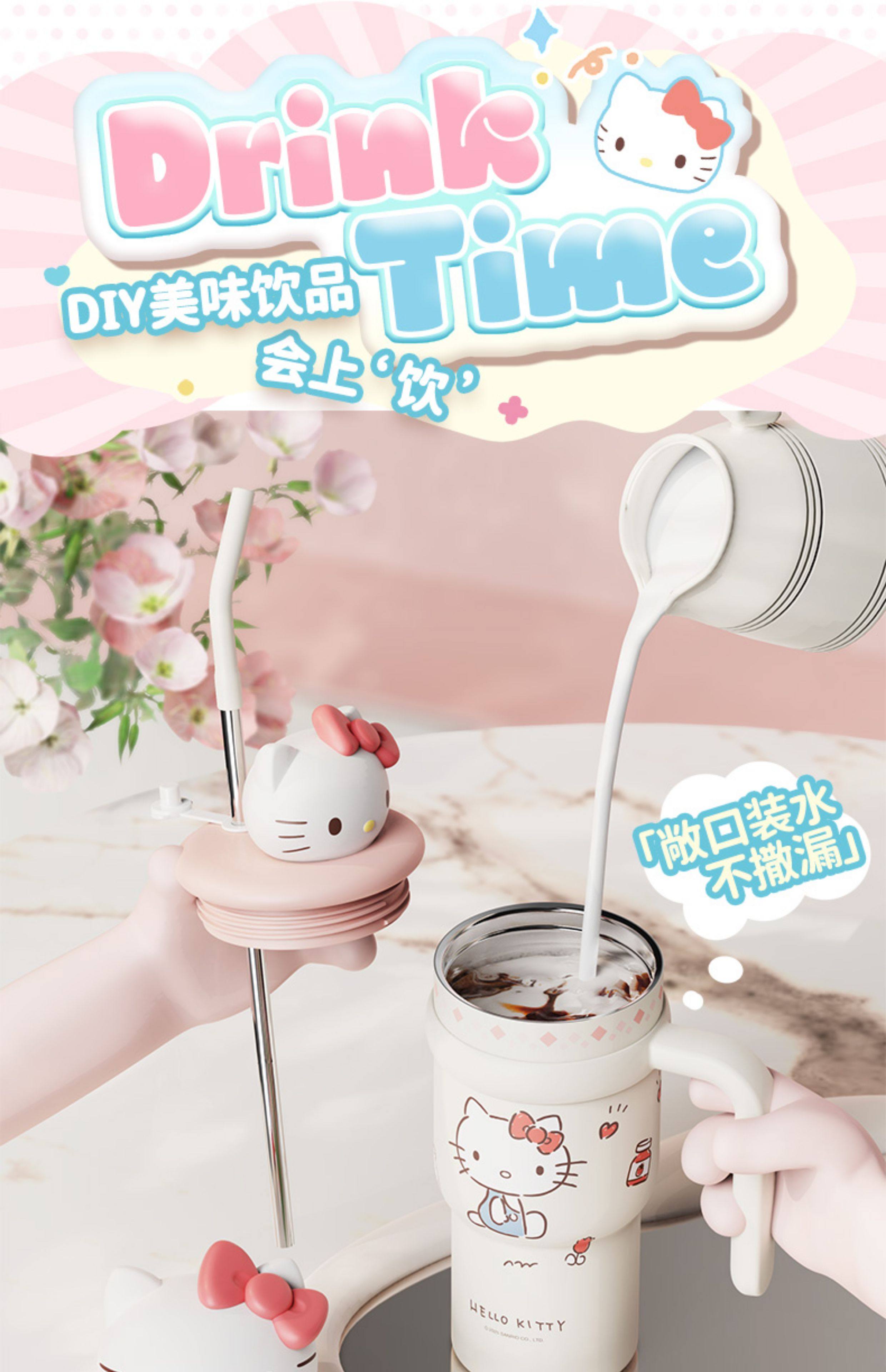 헬로키티 보온병 컵 소녀 대용량 헬로키티 콜드 컵 빅맥 아이스 컵 밀짚 컵스토어 가기