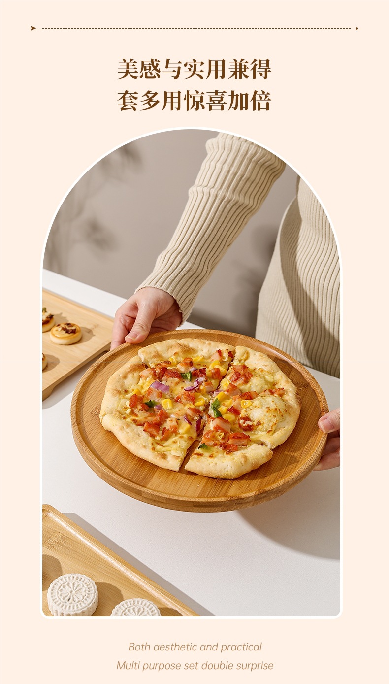• 둥근 손잡이 대나무 접시
