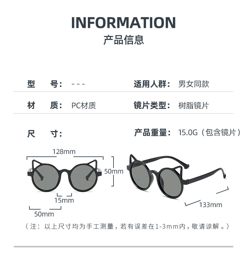 소년과 소녀를위한 새로운 고양이 귀 어린이 선글라스 만화 선글라스 귀여운 아기 라운드 프레임 선글라스스토어 가기
