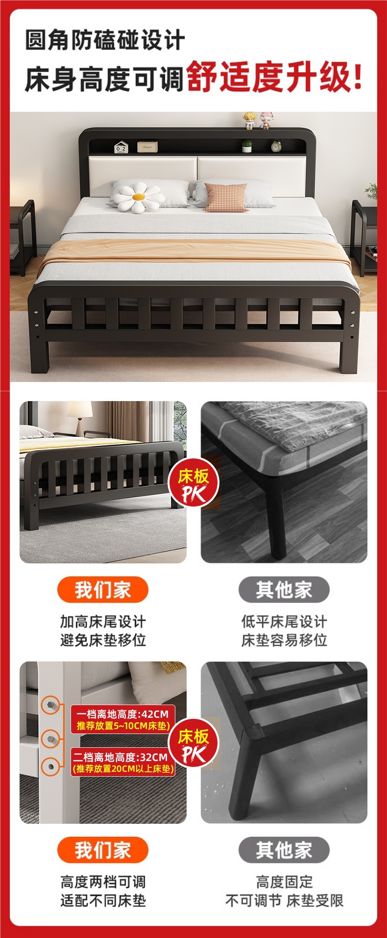 가정용 철제 침대, 마스터 침실 더블 침대, 1.5m 싱글 기숙사, 임대실용 두꺼운 철제 프레임 침대, 1.2m 철제 침대스토어 가기