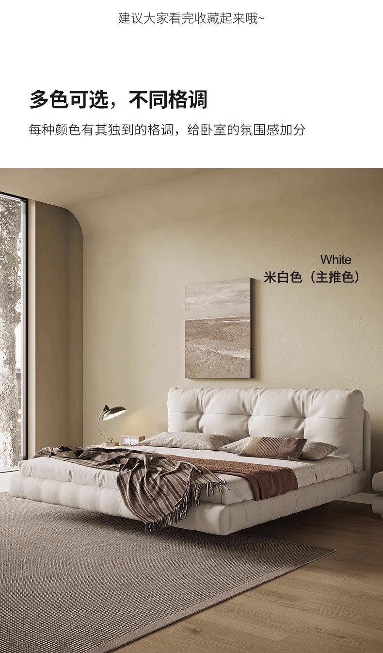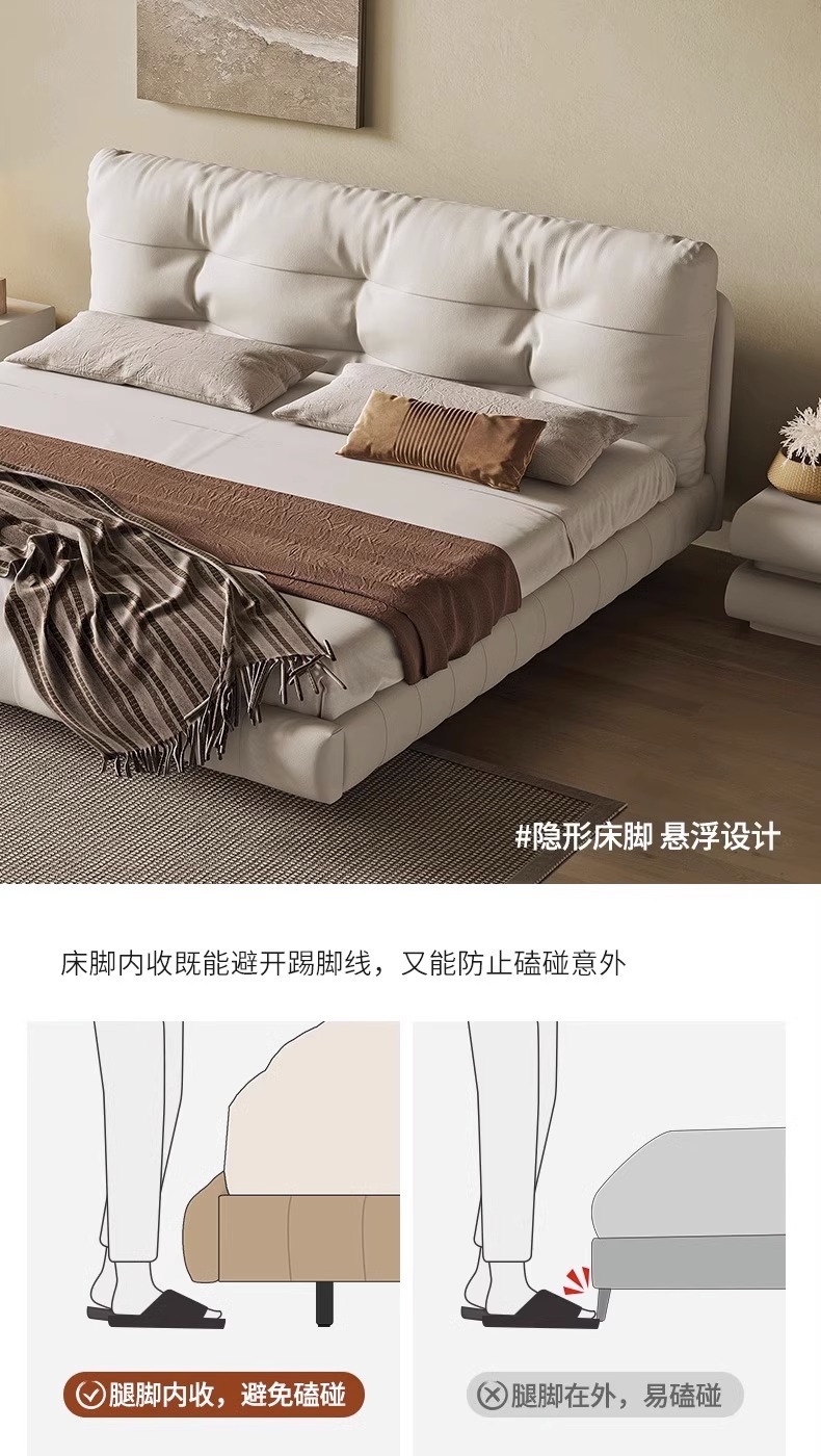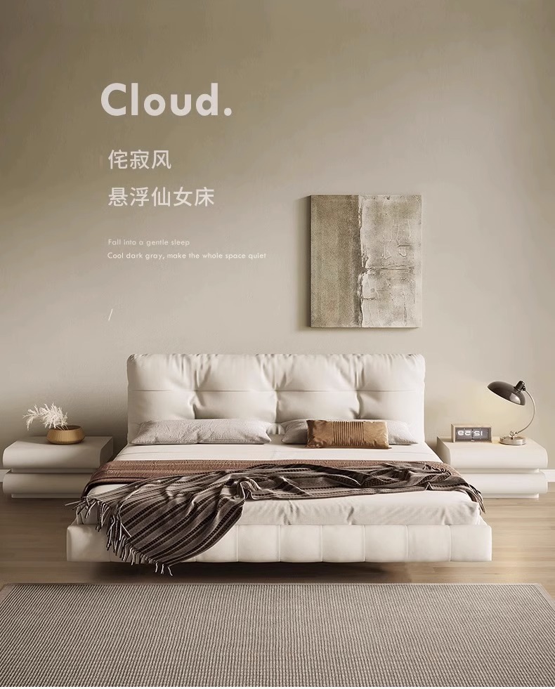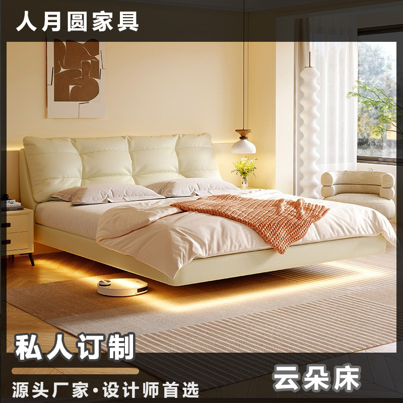 클라우드 서스펜션 침대, 천연 가죽, 심플 모던 더블 침대, 가볍고 고급스럽고 분위기 있는 중세 크림 스타일 마스터 침실 고급 서스펜션 침대스토어 가기