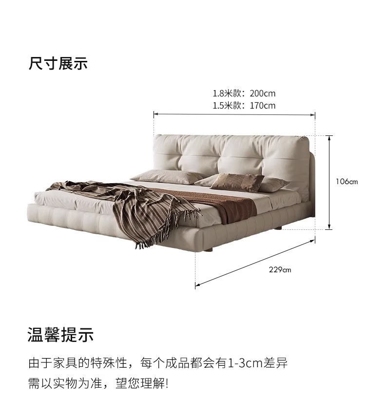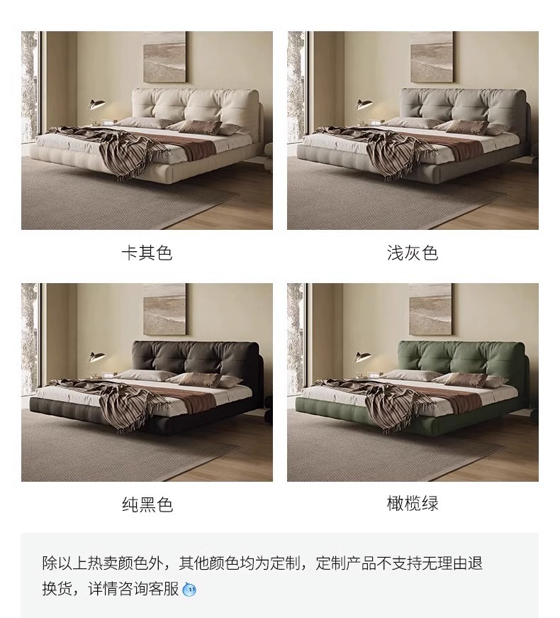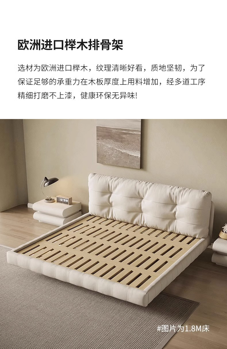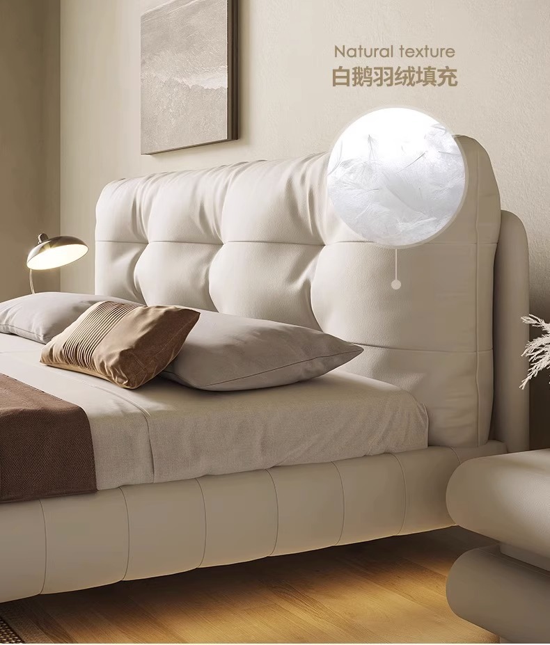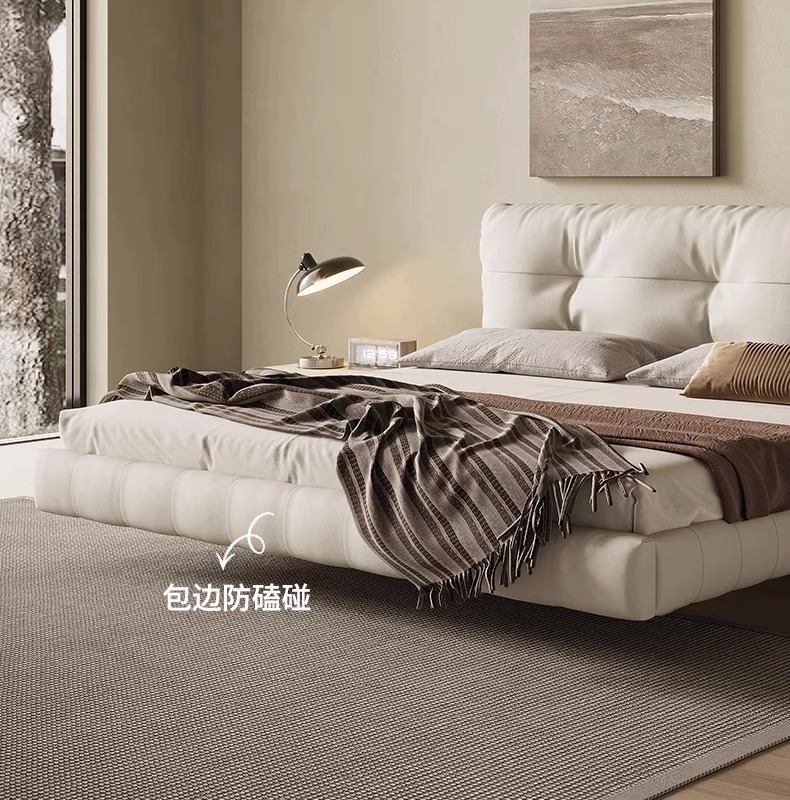 클라우드 서스펜션 침대, 천연 가죽, 심플 모던 더블 침대, 가볍고 고급스럽고 분위기 있는 중세 크림 스타일 마스터 침실 고급 서스펜션 침대스토어 가기