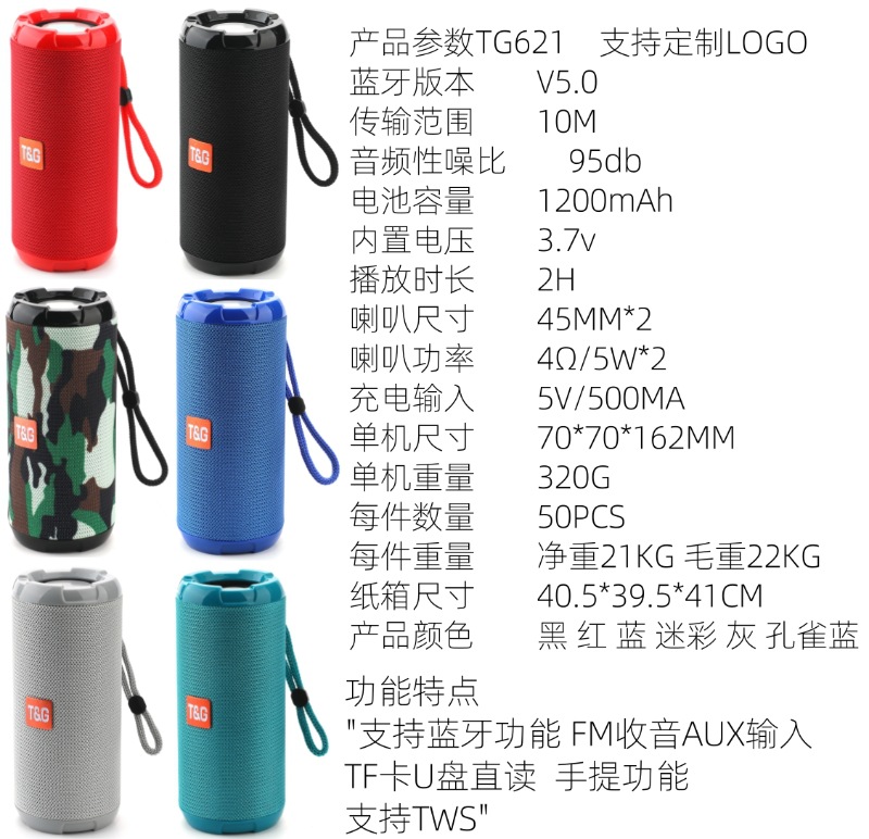 국경 간 TG621 블루투스 스피커 야외 휴대용 휴대용 패브릭 카드 TWS 시리즈 서브 우퍼 소형 스피커 블루투스