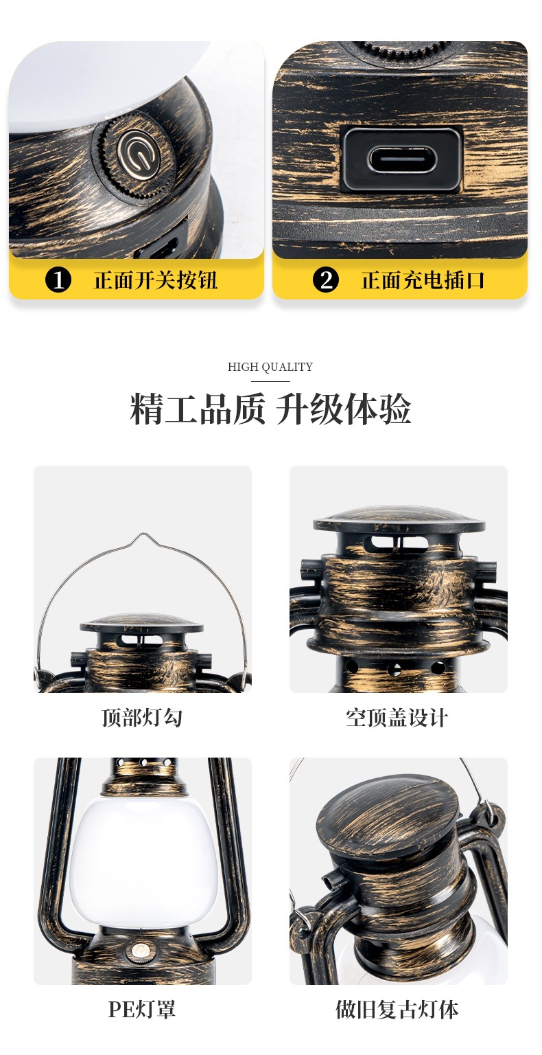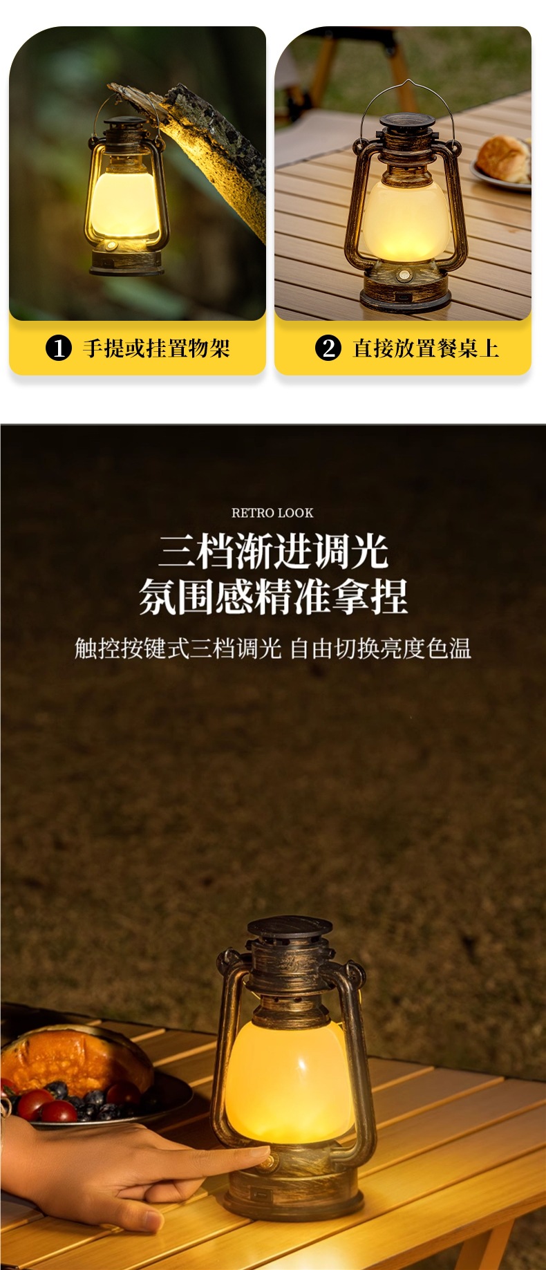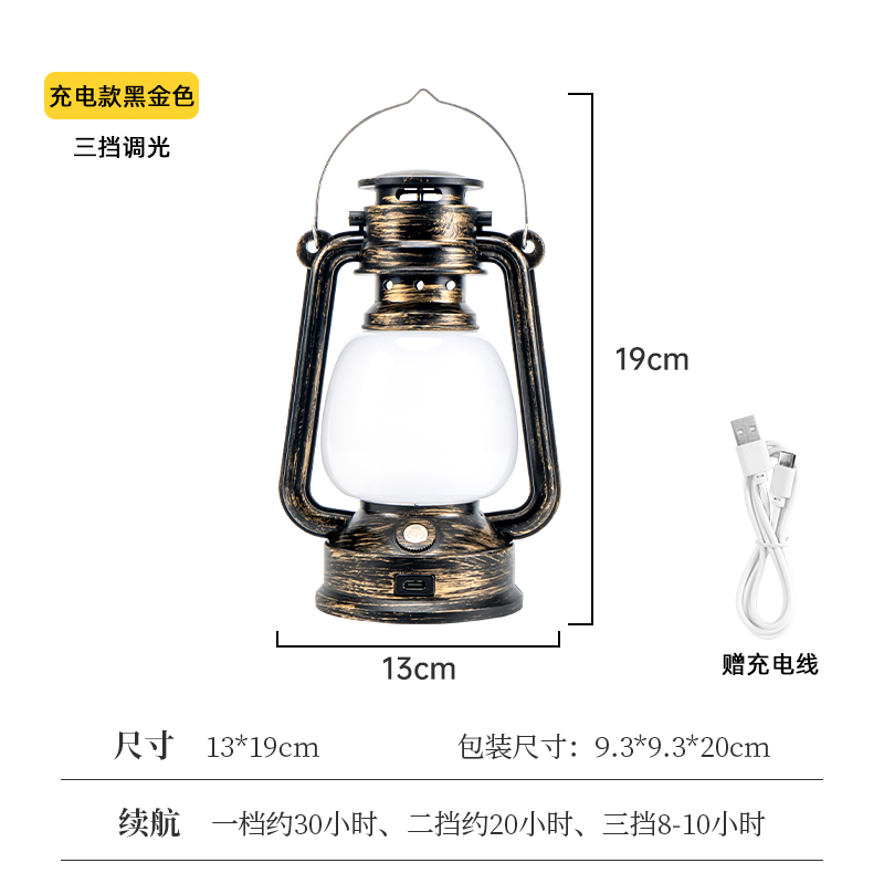 • 충전식 모델 [블랙 앤 골드 레트로 캠핑 램프]