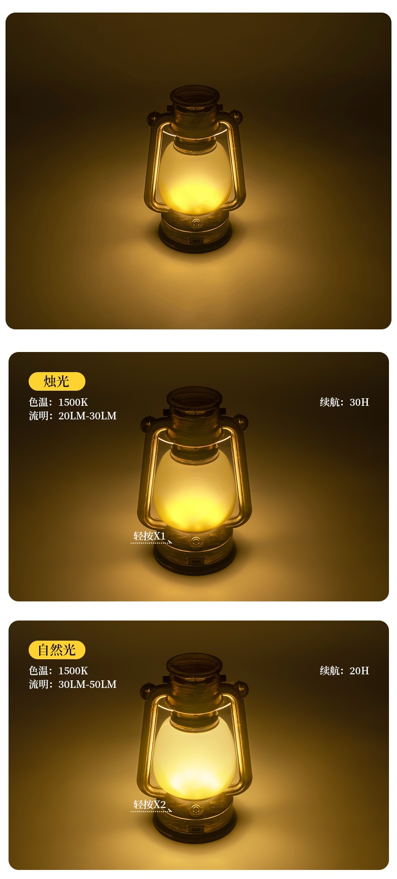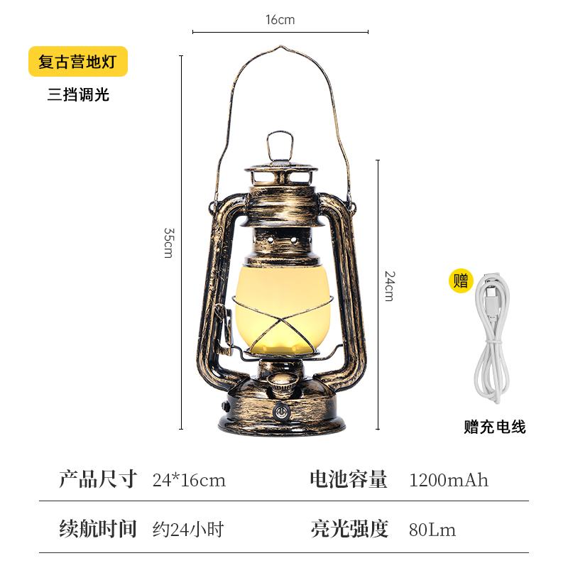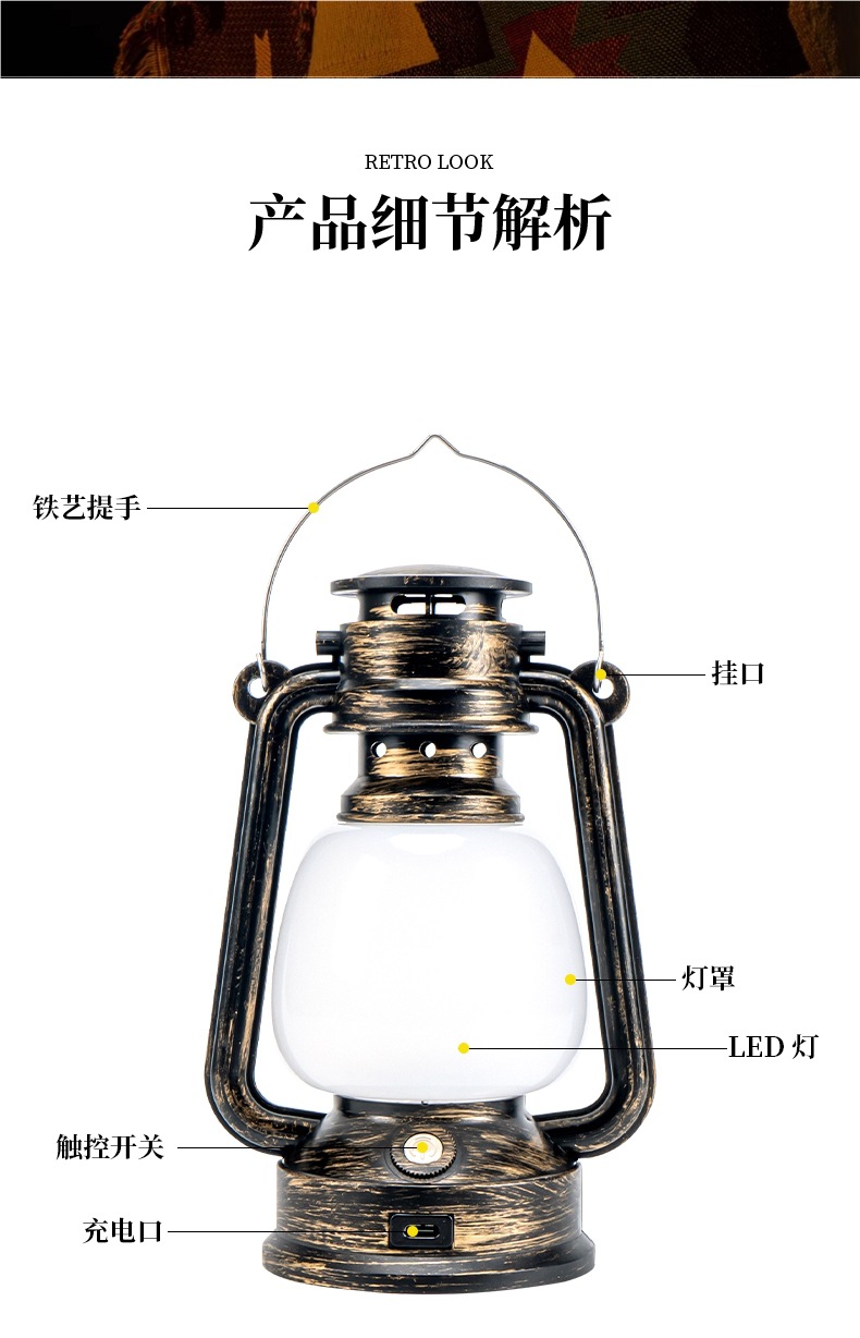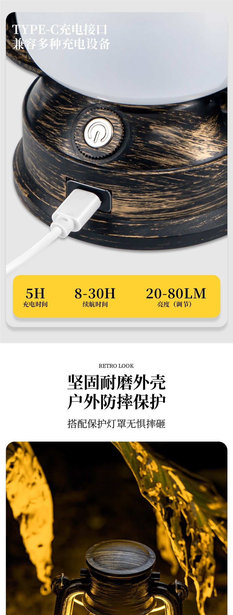 • 충전식 모델 [블랙 앤 골드 레트로 캠핑 램프]