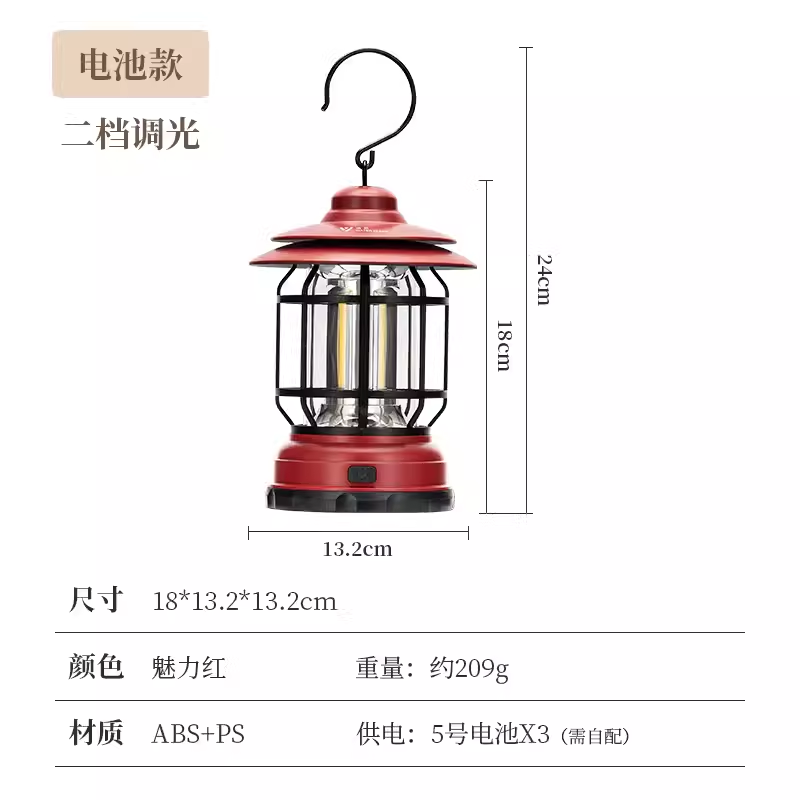 • 표준 배터리 모델 [매력적인 레드 레트로 캠핑 램프]