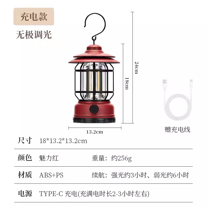 • 업그레이드된 충전식 모델 [매력적인 레드 레트로 캠핑 램프]