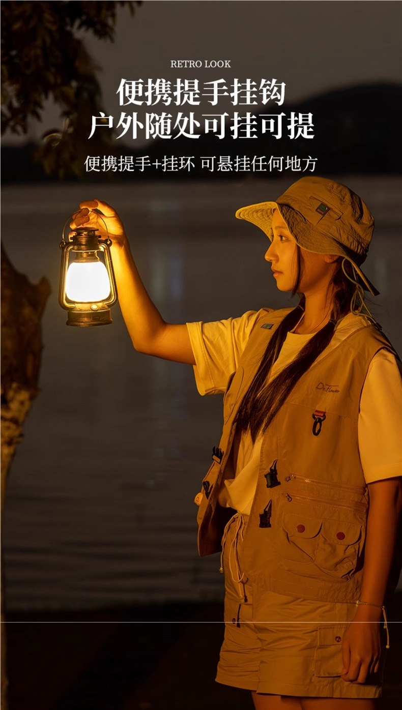 • 업그레이드된 충전식 모델 [샤이니 블랙 레트로 캠핑램프]