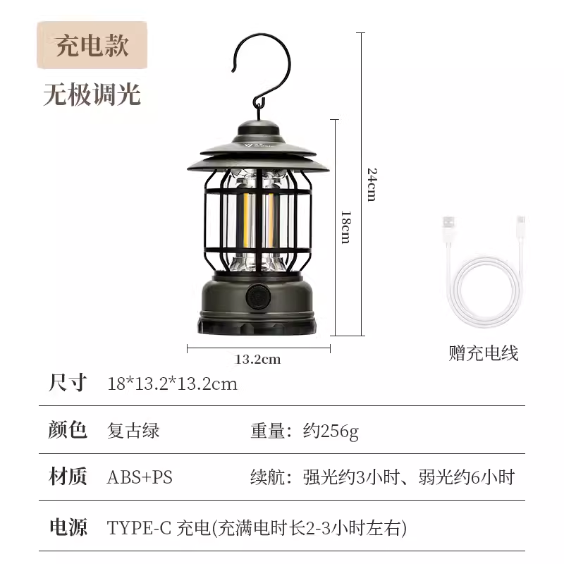 • 업그레이드된 충전식 모델 [레트로 그린 레트로 캠핑 램프]
