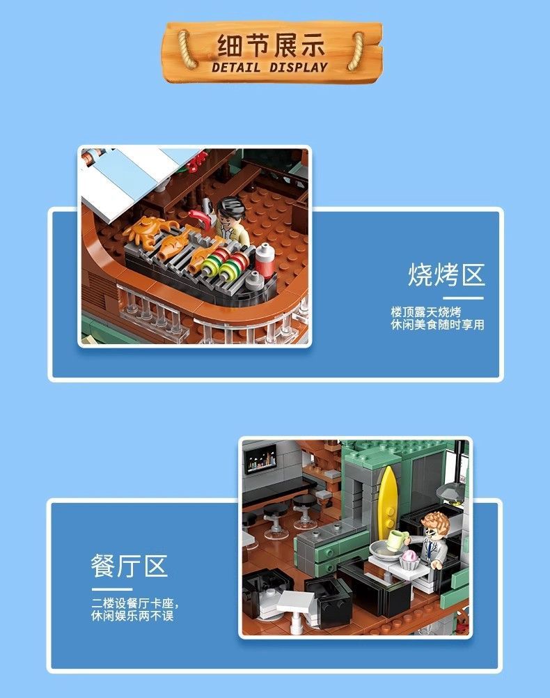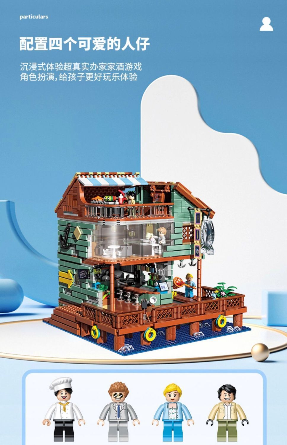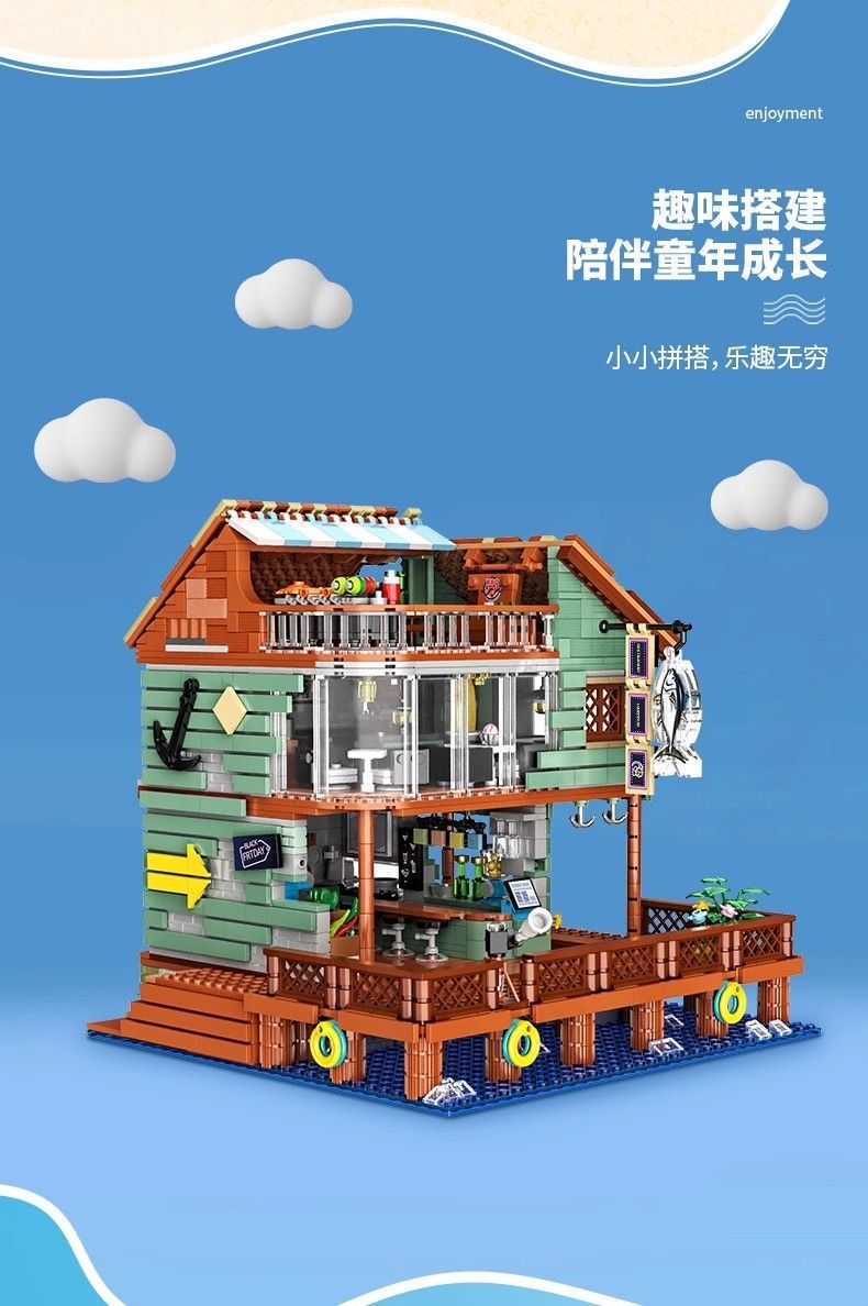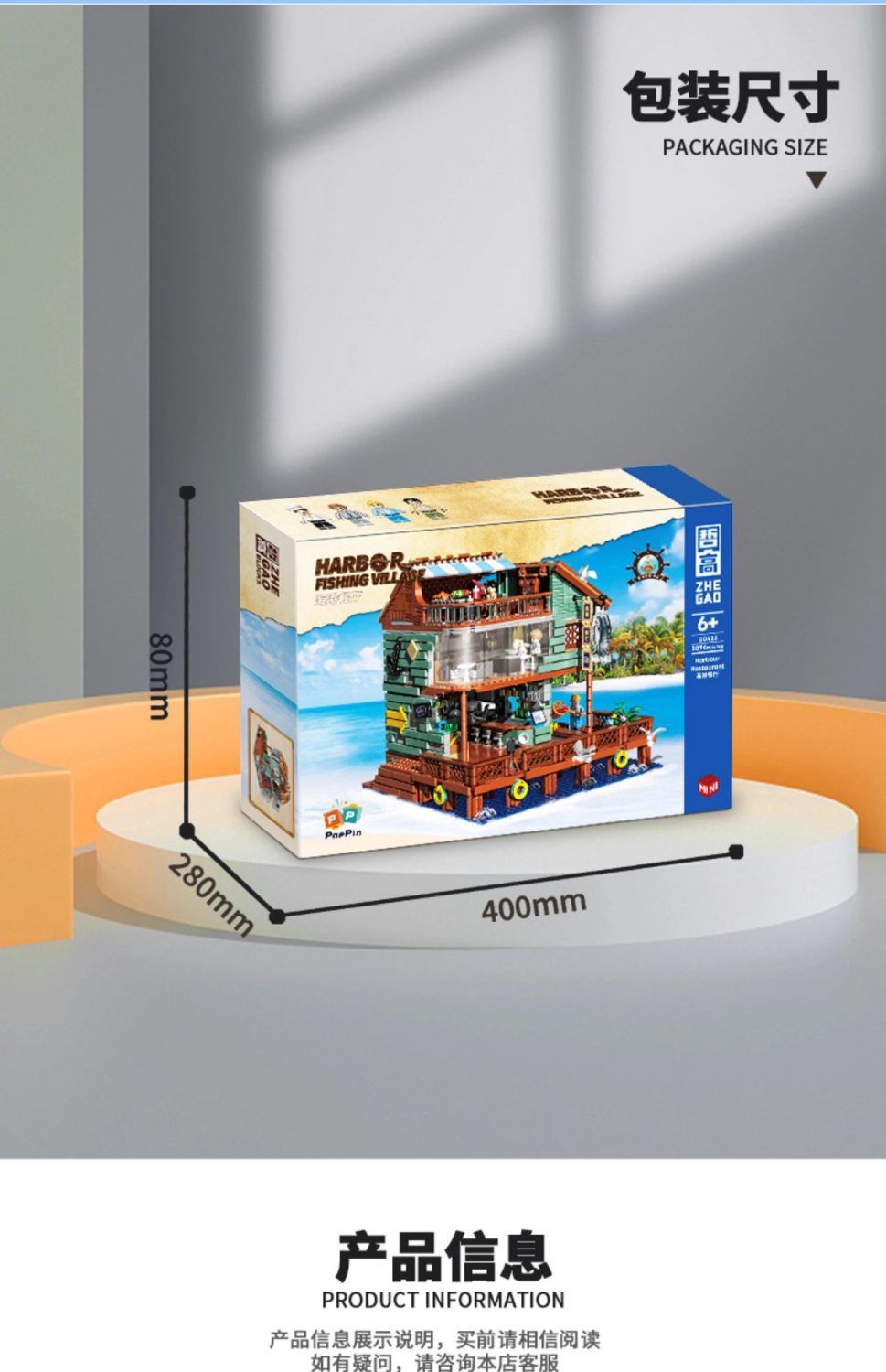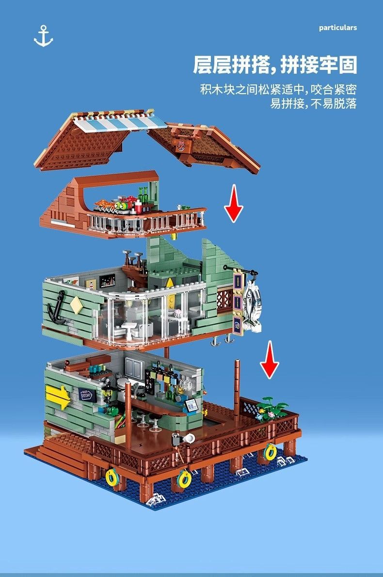 Zhegao 미니 벽돌 스트리트 뷰 어부의 집 해양 항구 호텔 성인 어려운 어린이 교육 조립 빌딩 블록 장난감스토어 가기