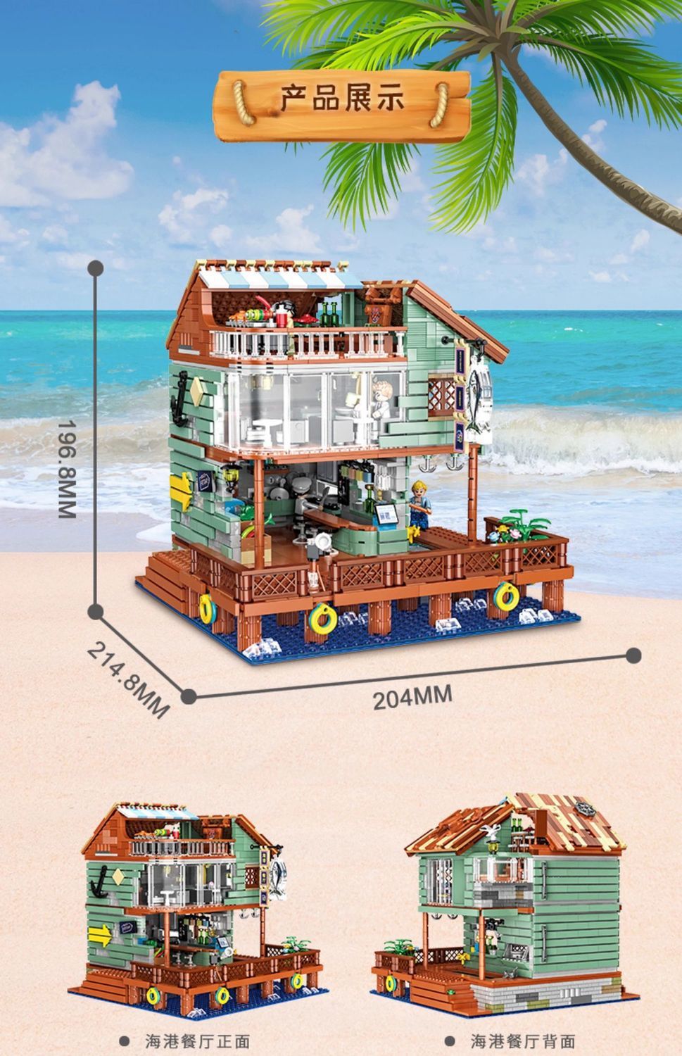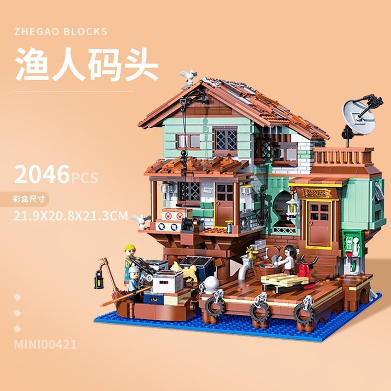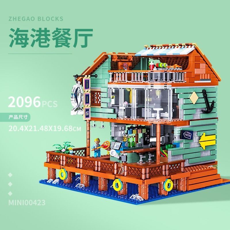 Zhegao 미니 벽돌 스트리트 뷰 어부의 집 해양 항구 호텔 성인 어려운 어린이 교육 조립 빌딩 블록 장난감
