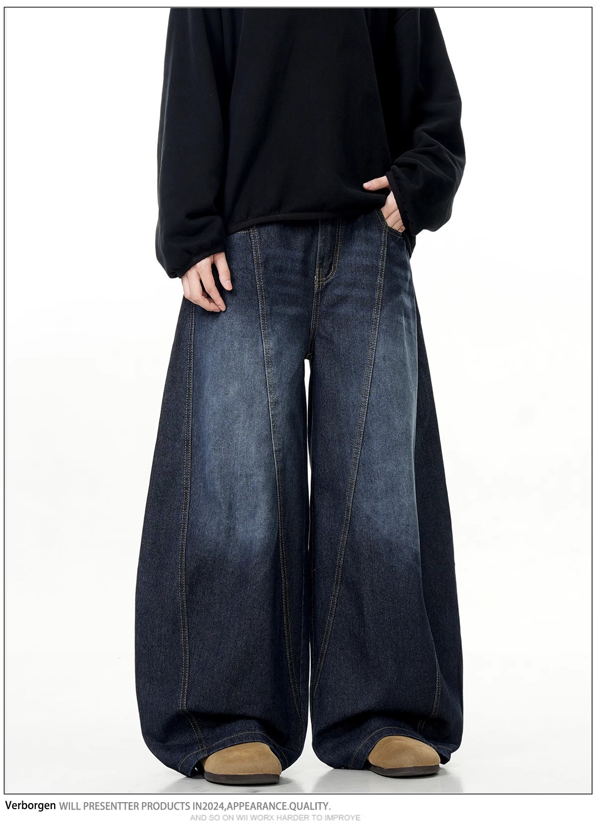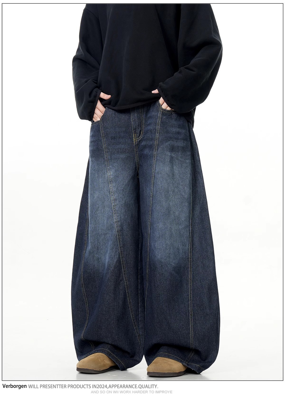 아메리칸 레트로 빈티지 워싱 디스트레스드 트렌디 브랜드 남성용 세이버 청바지 루즈한 와이드 레그 다용도 롱 팬츠스토어 가기