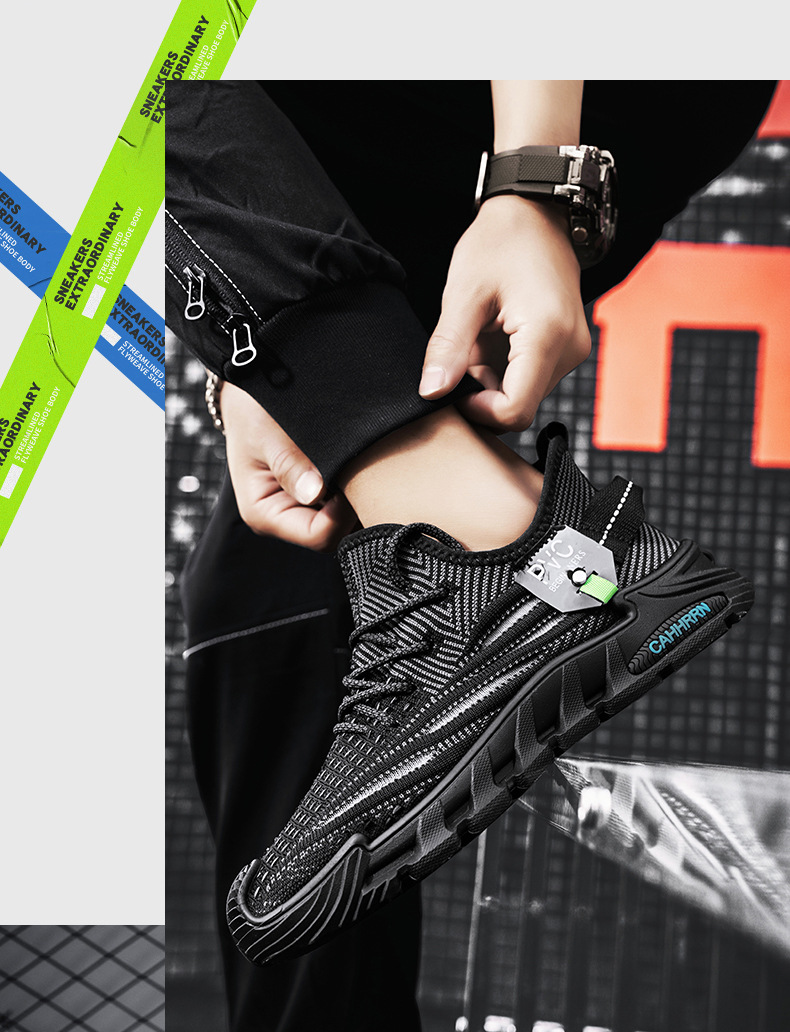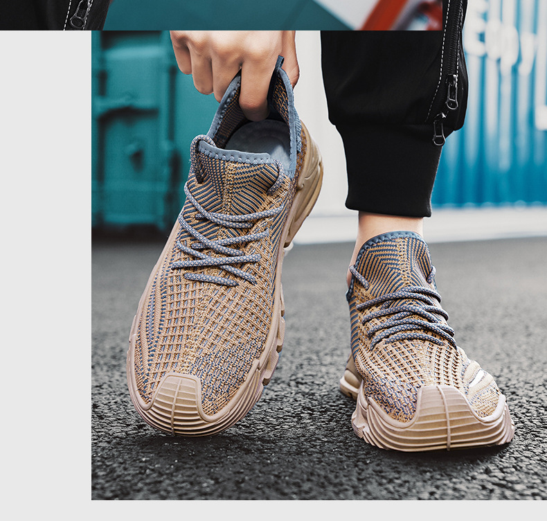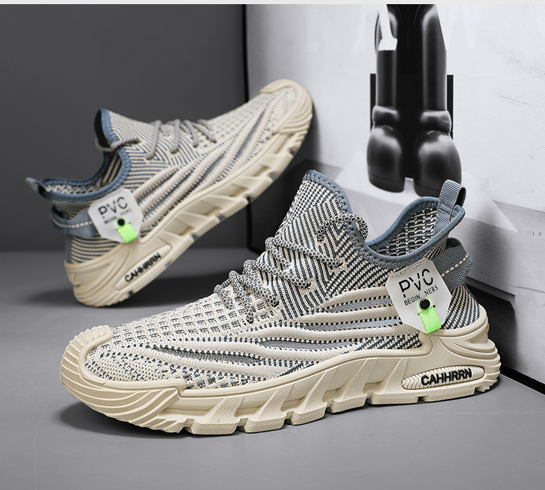 2025 봄 여름 새로운 스타일 플라이 짠 얇은 통기성 로우 탑 레이스 업 운동화 두꺼운 밑창 아빠 신발 남성 신발스토어 가기