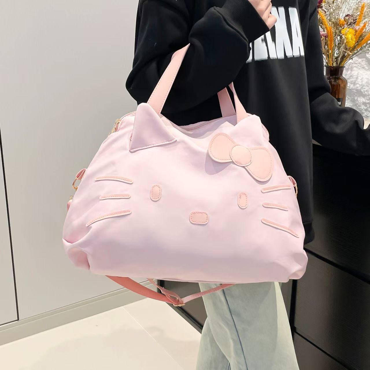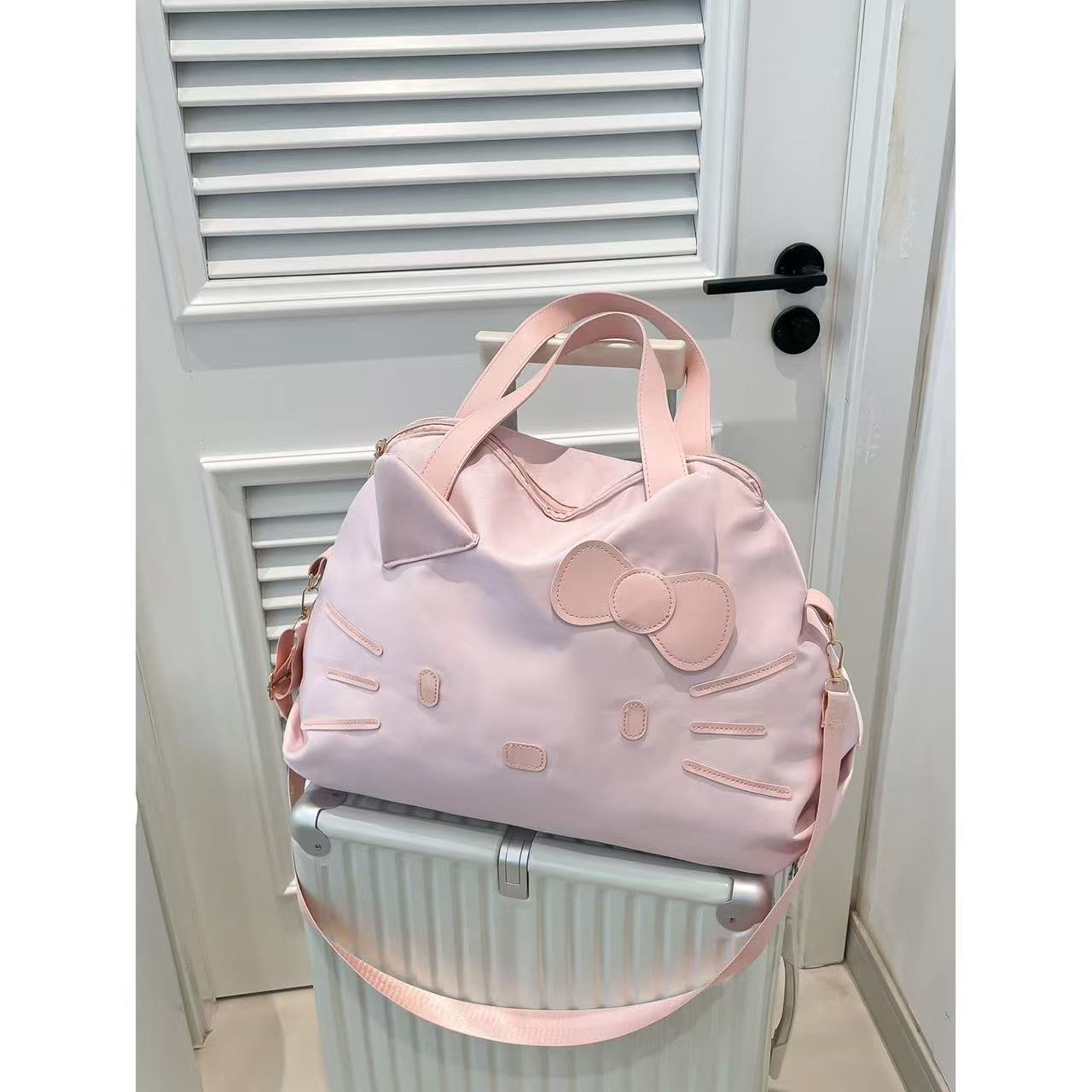 대용량 휴대용 단거리 여행 가방 KT 출장 수하물 가방 헬로 키티 캐주얼 숄더백 여성용 만화 토트 백스토어 가기