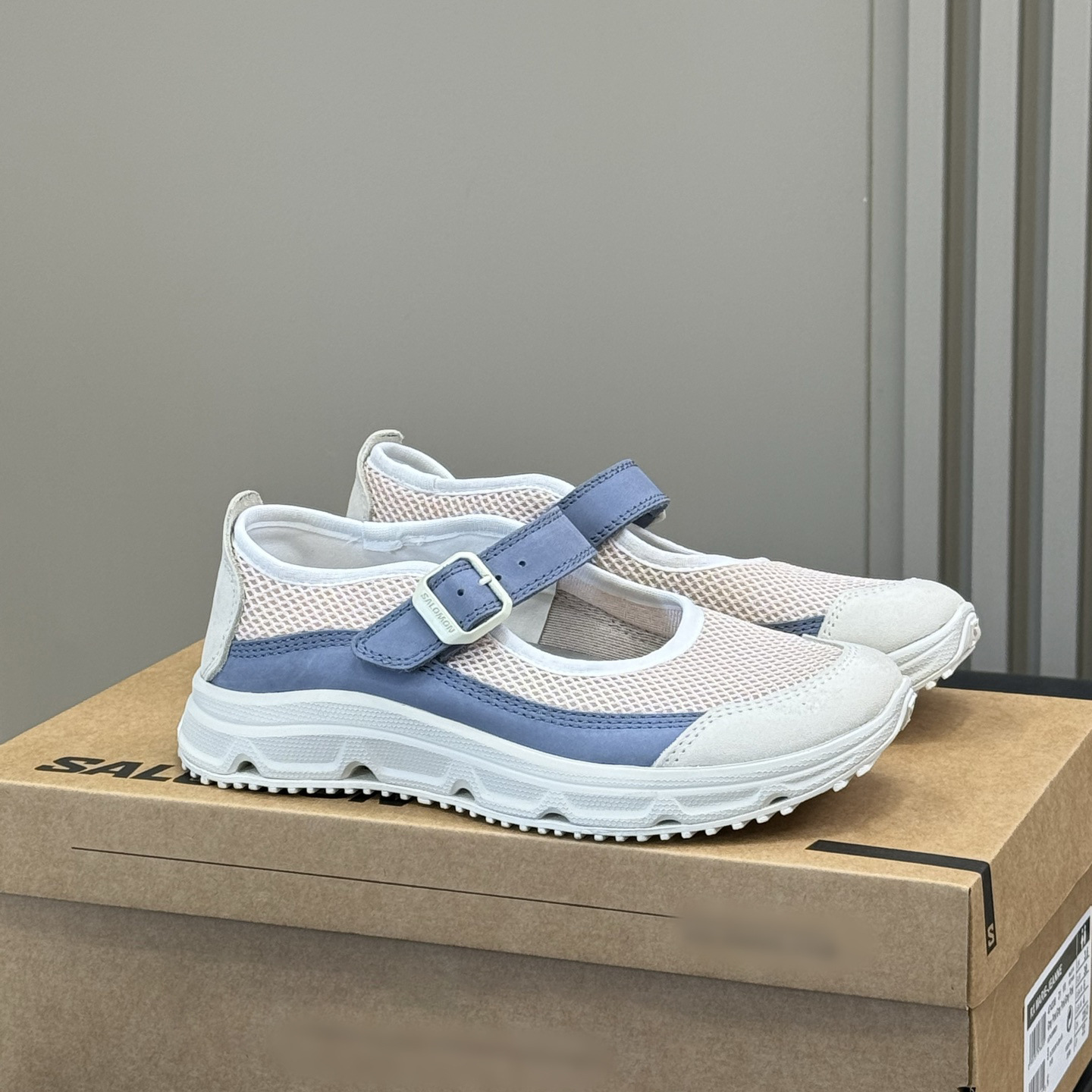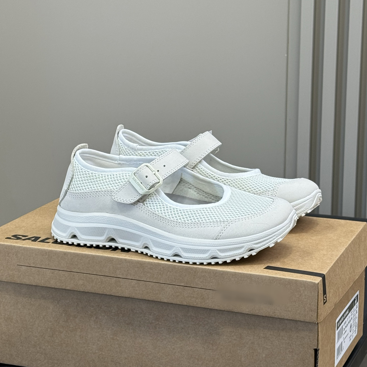 아웃도어 복고 캐주얼 운동화, 메리제인 샌들, 부드러운 밑창의 편안한 신발, 메쉬 슈즈, 원라인 버클 스트랩 화이트 슈즈스토어 가기