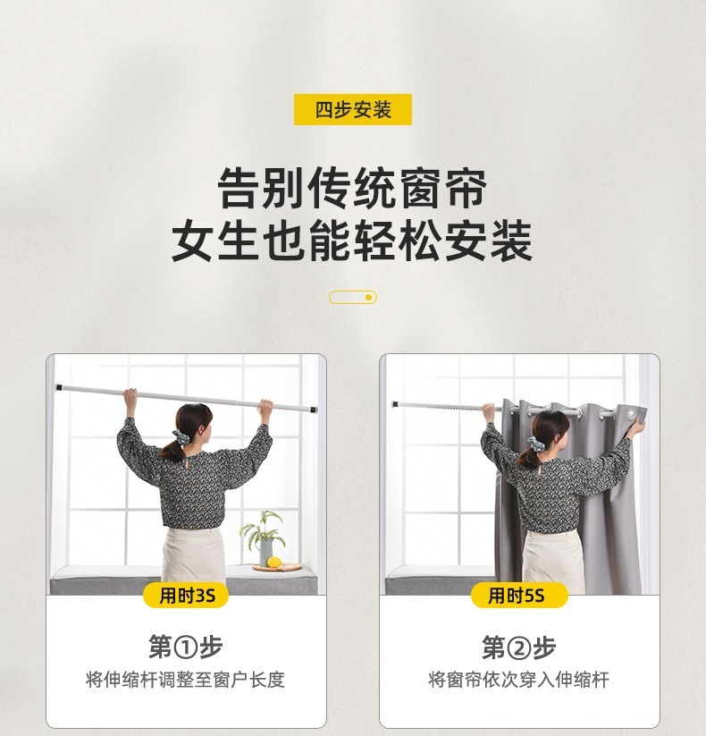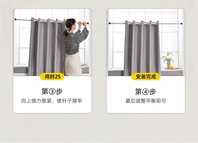 침실과 거실을 위한 완전한 차광, 단열 및 자외선 차단 기능을 갖춘 펀치 커튼, 보급창 칸막이 커튼, 텔레스코픽 막대 세트스토어 가기