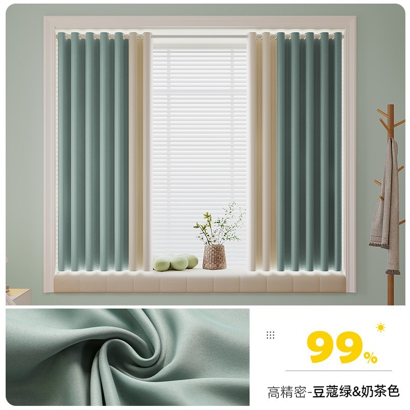 침실과 거실을 위한 완전한 차광, 단열 및 자외선 차단 기능을 갖춘 펀치 커튼, 보급창 칸막이 커튼, 텔레스코픽 막대 세트